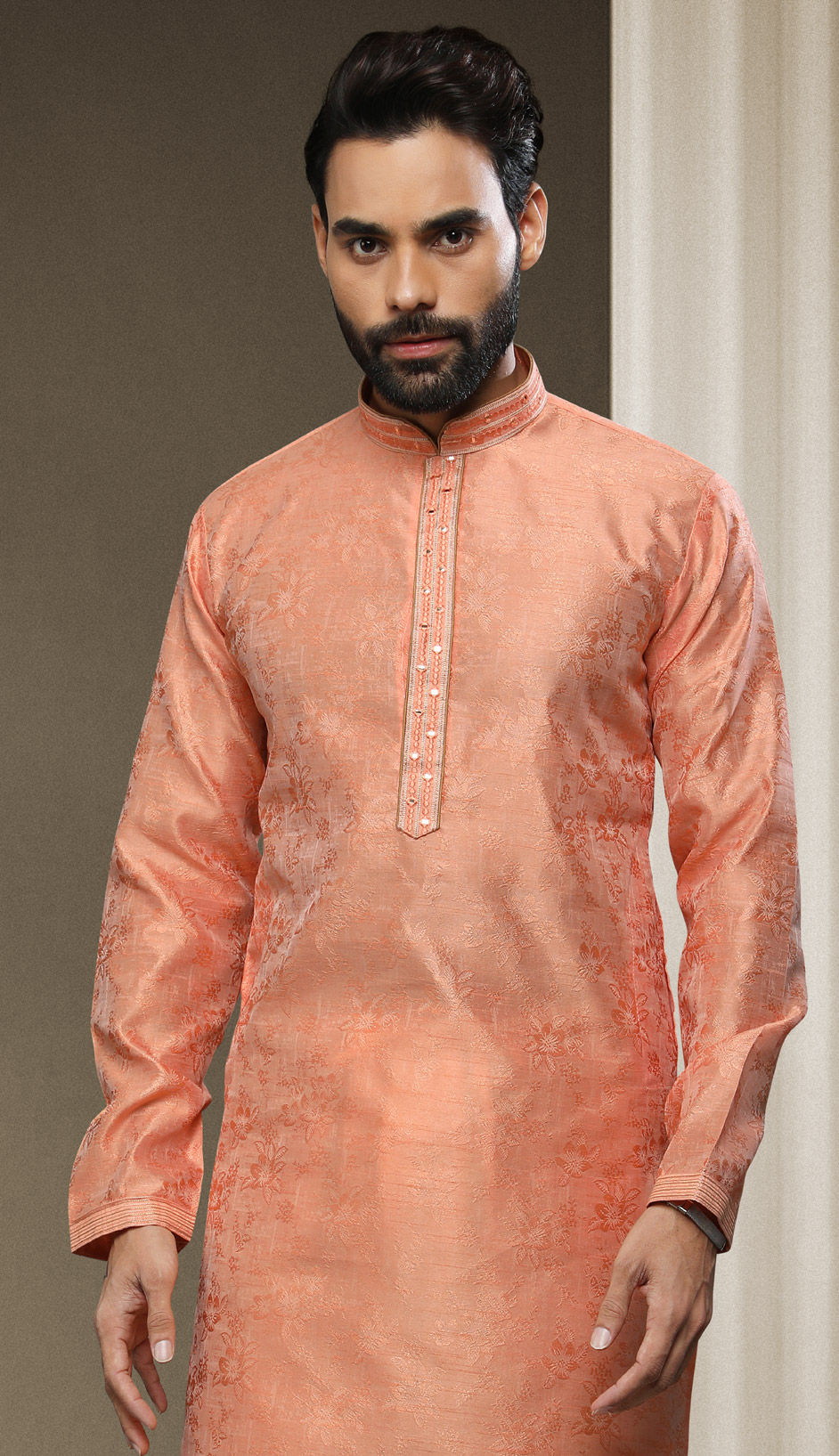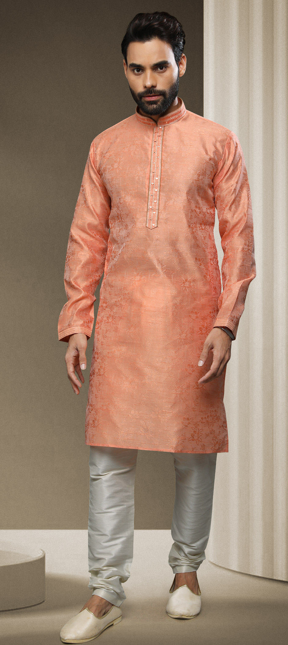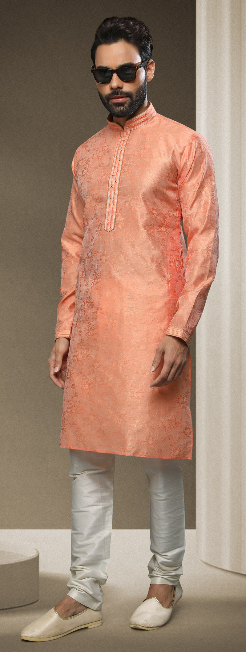 Pink and Majenta color Kurta Pyjamas in Jacquard fabric with Embroidered, Mirror work