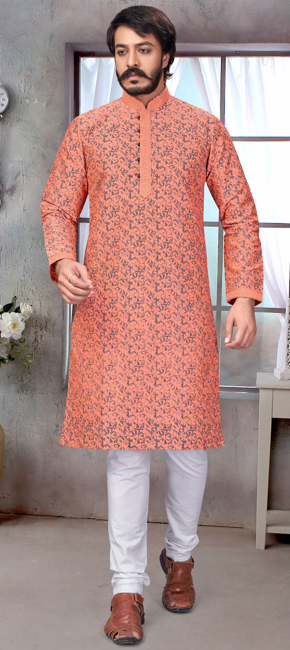 Pink and Majenta color Kurta Pyjamas in Jacquard fabric with Lace, Printed work