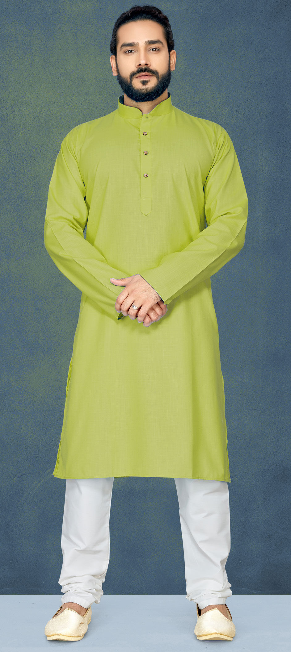 Green color Kurta Pyjamas in Poly cotton fabric with Thread work