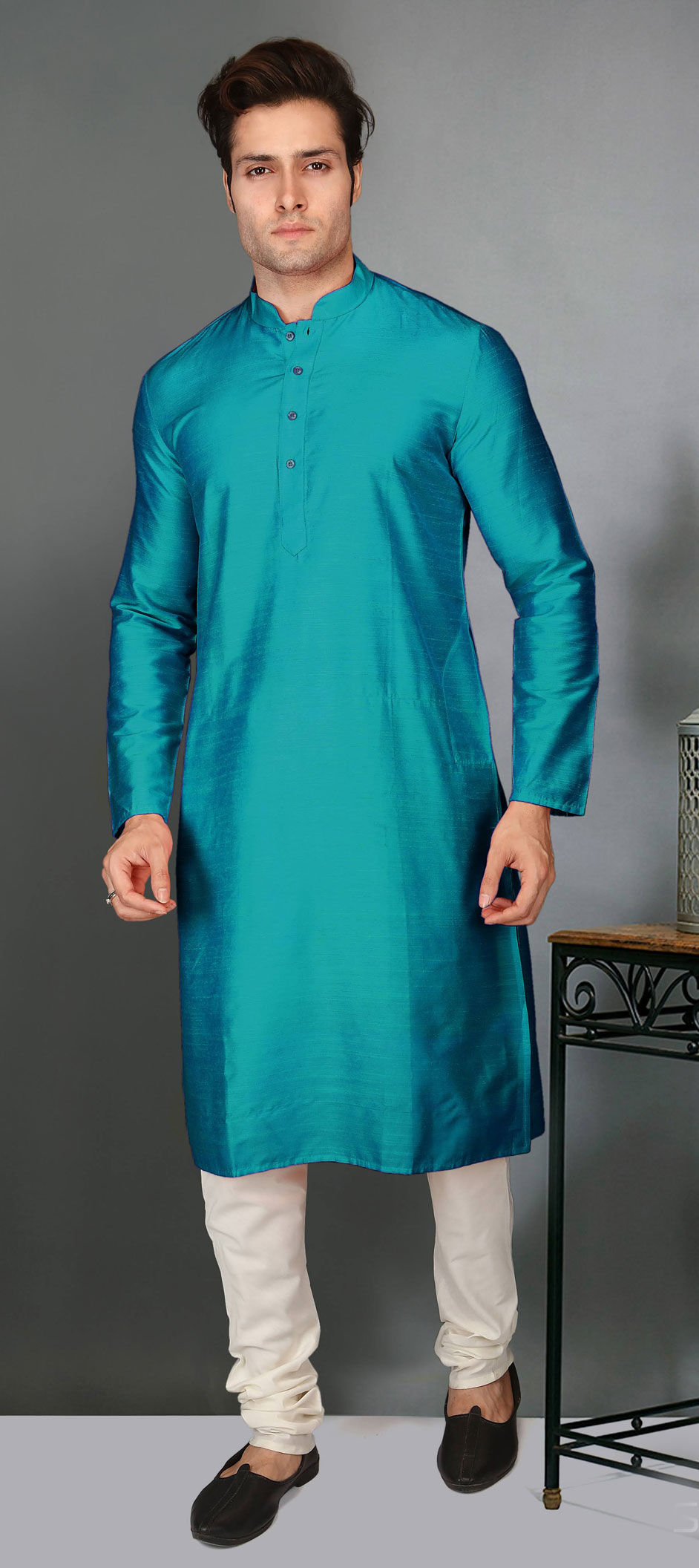 Blue color Kurta Pyjamas in Poly Silk fabric with Thread work