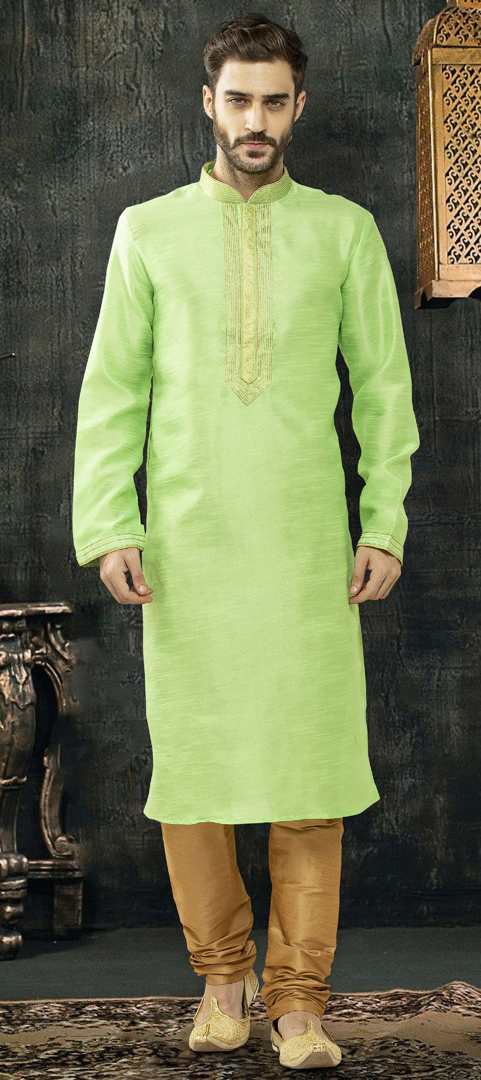 Green color Kurta Pyjamas in Poly Silk fabric with Embroidered, Thread work