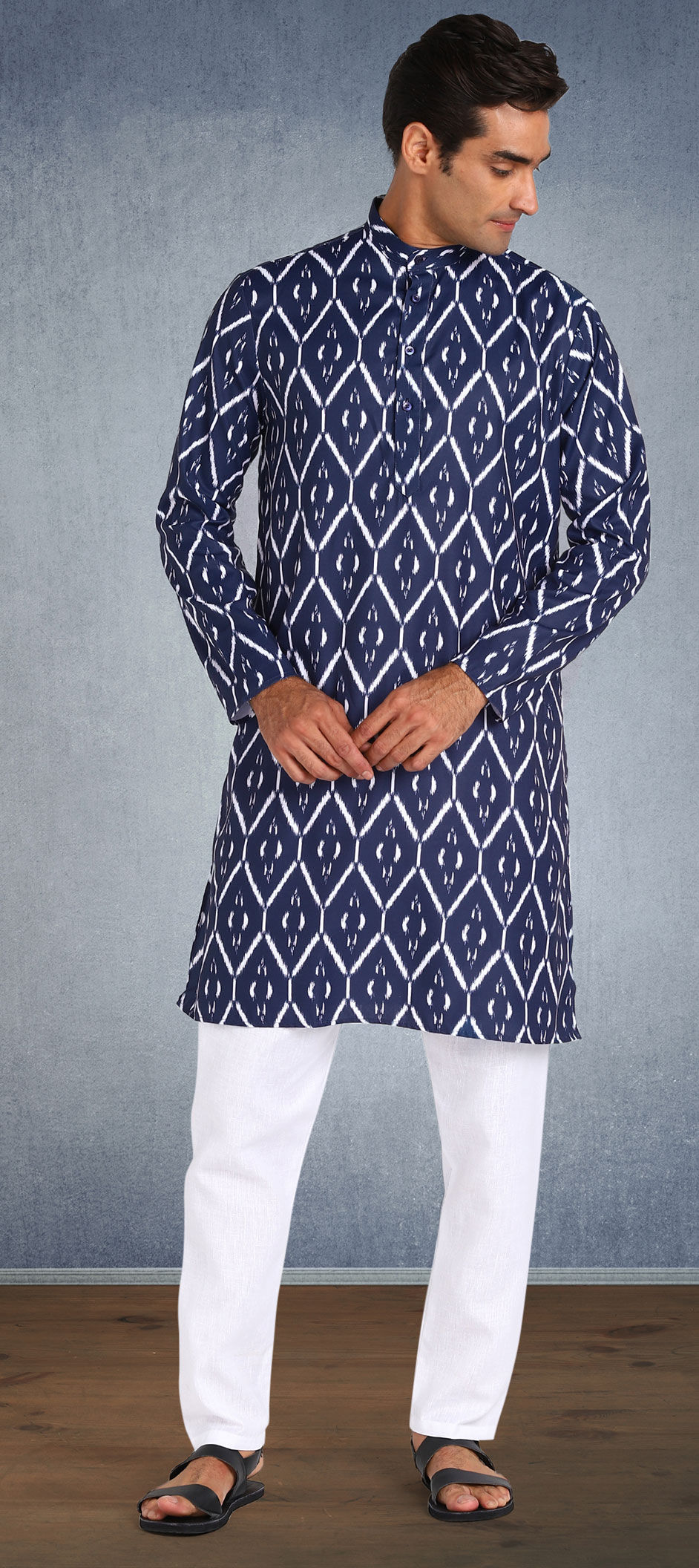 Blue color Kurta Pyjamas in Rayon fabric with Thread work