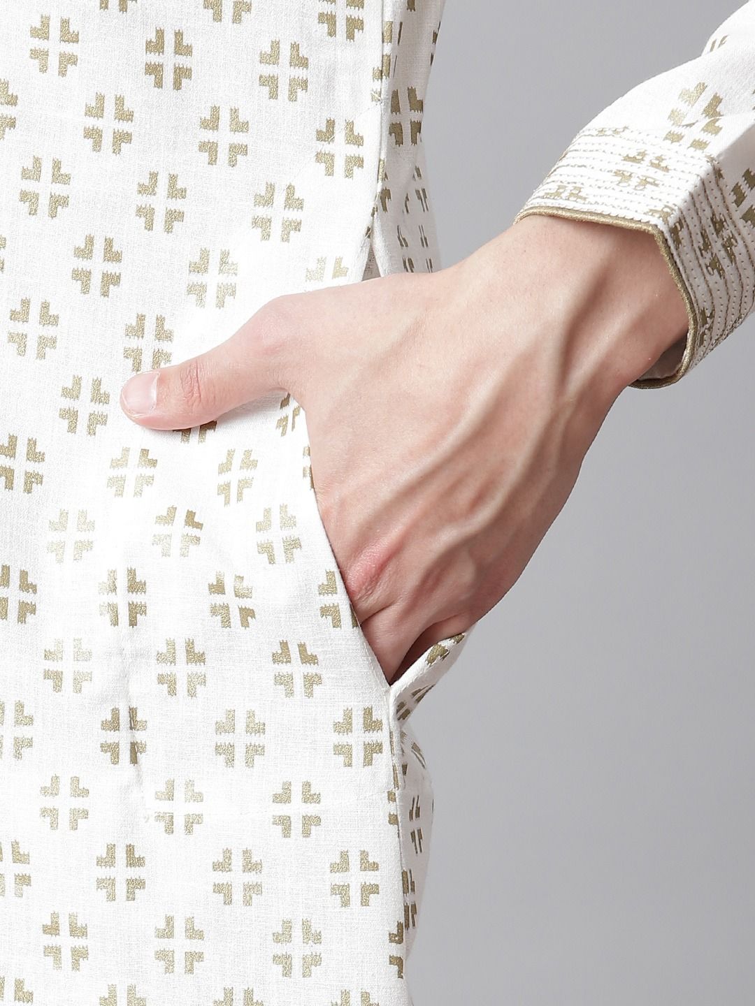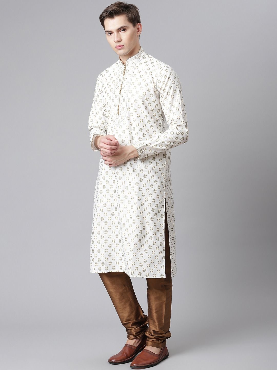 White and Off White color Kurta Pyjamas in Silk cotton fabric with Printed work