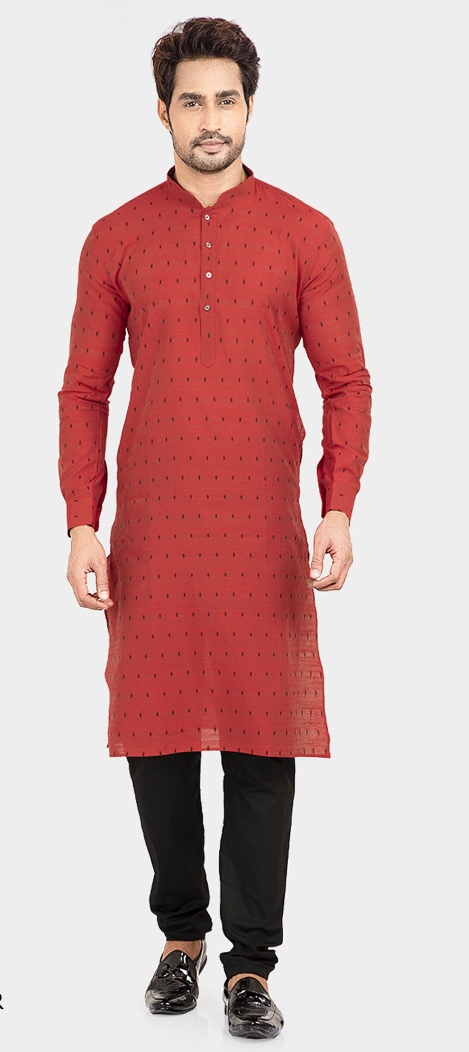 Red and Maroon color Kurta Pyjamas in Silk fabric with Thread work