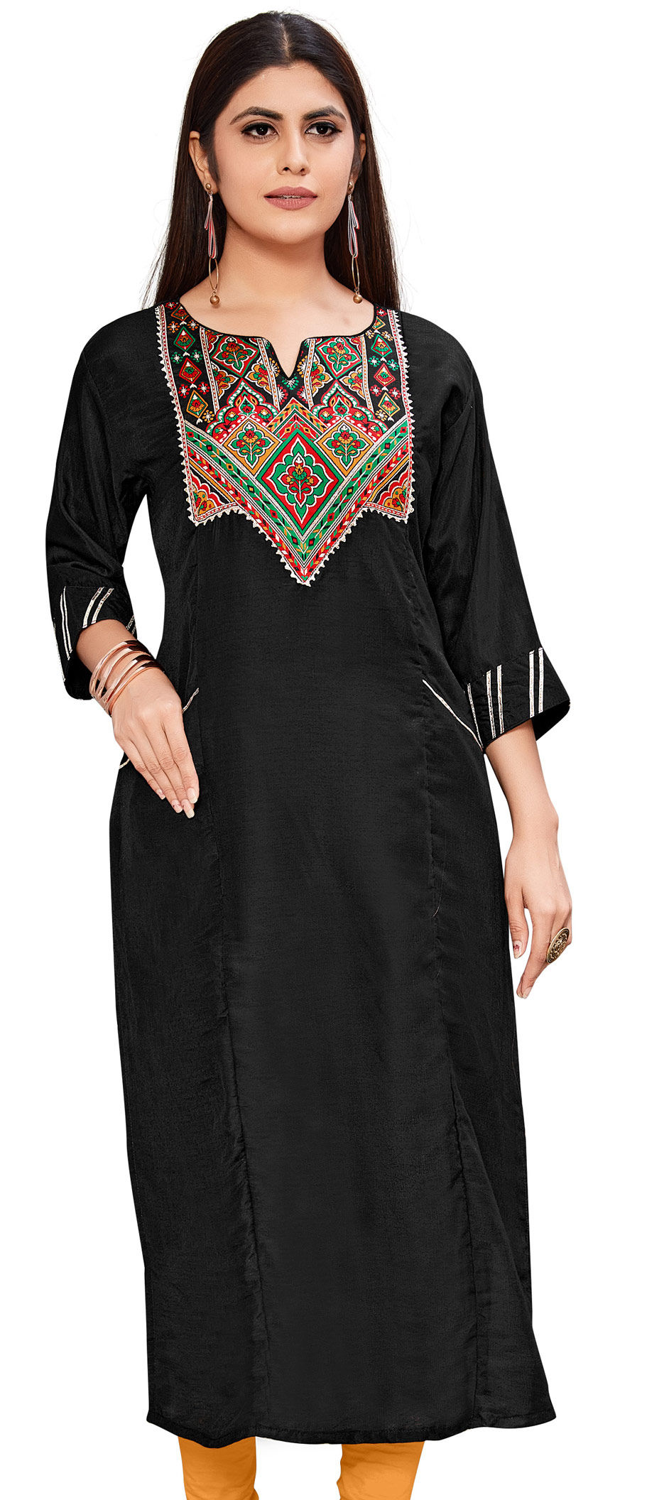 Black and Grey color Kurti in Art Silk fabric with Patch work
