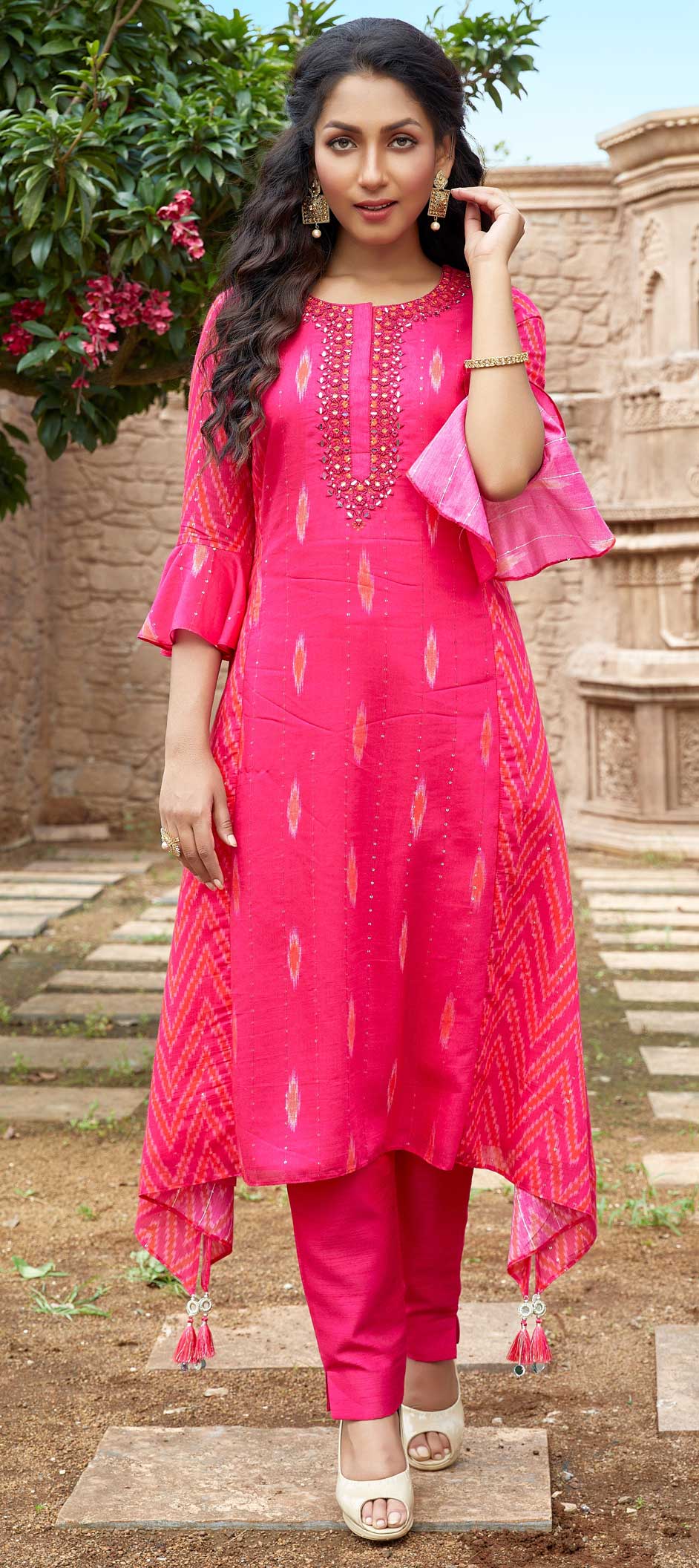 Pink and Majenta color Kurti in Art Silk fabric with Digital Print work