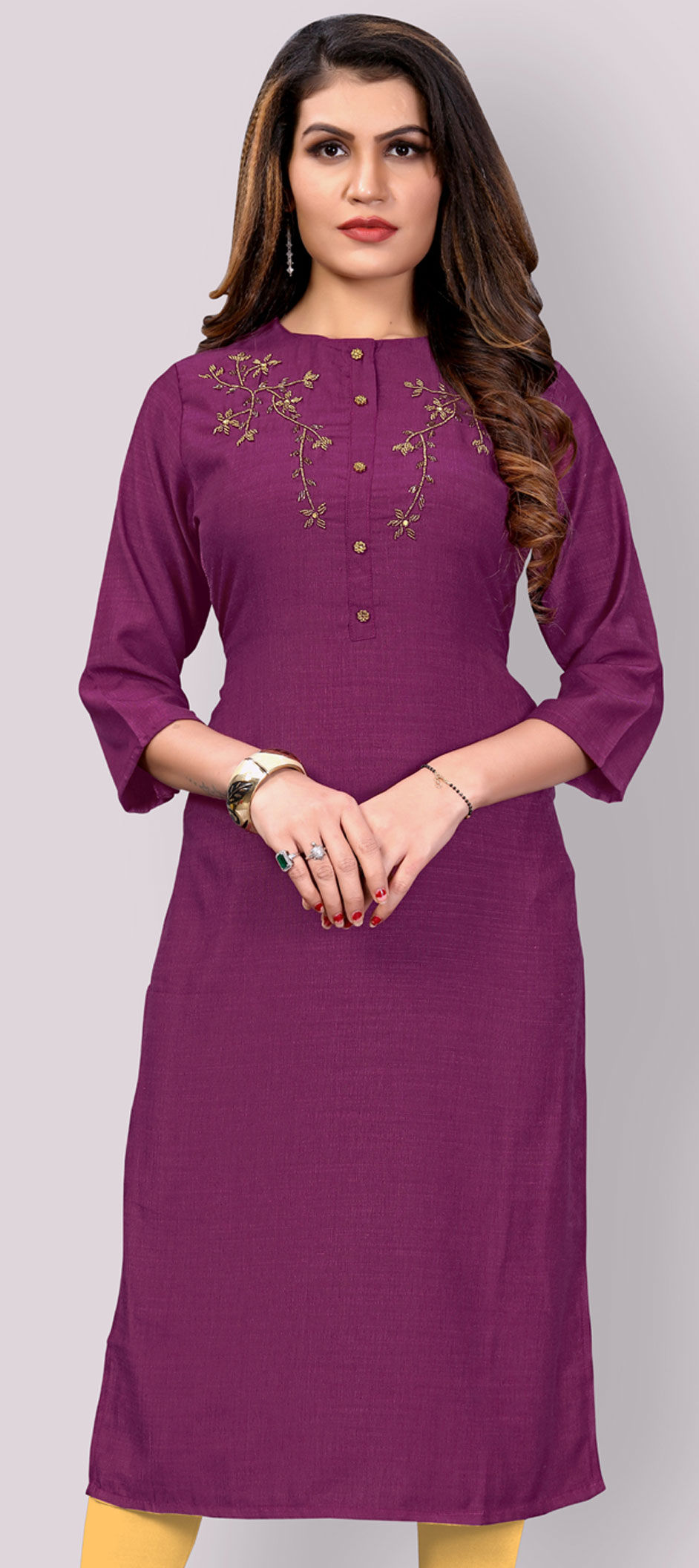 Purple and Violet color Kurti in Art Silk fabric with Bugle Beads work