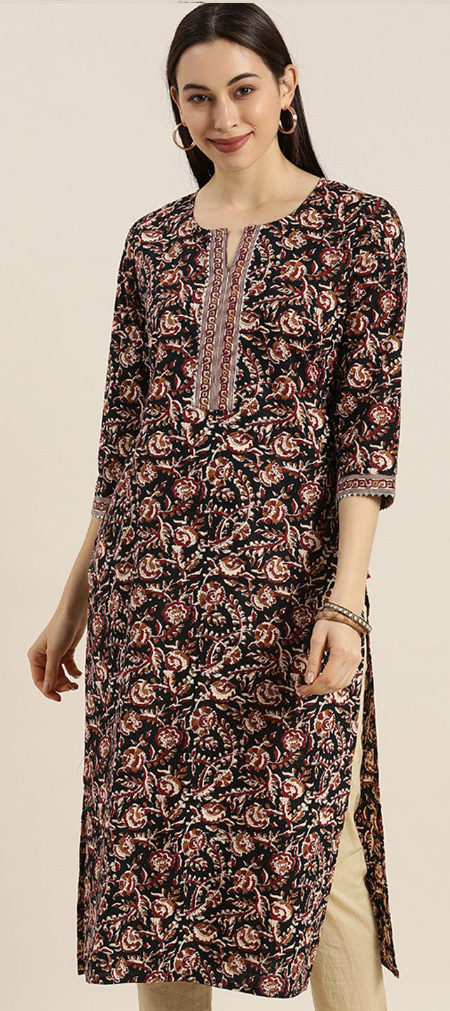 Black and Grey color Kurti in Blended Cotton fabric with Floral, Printed work