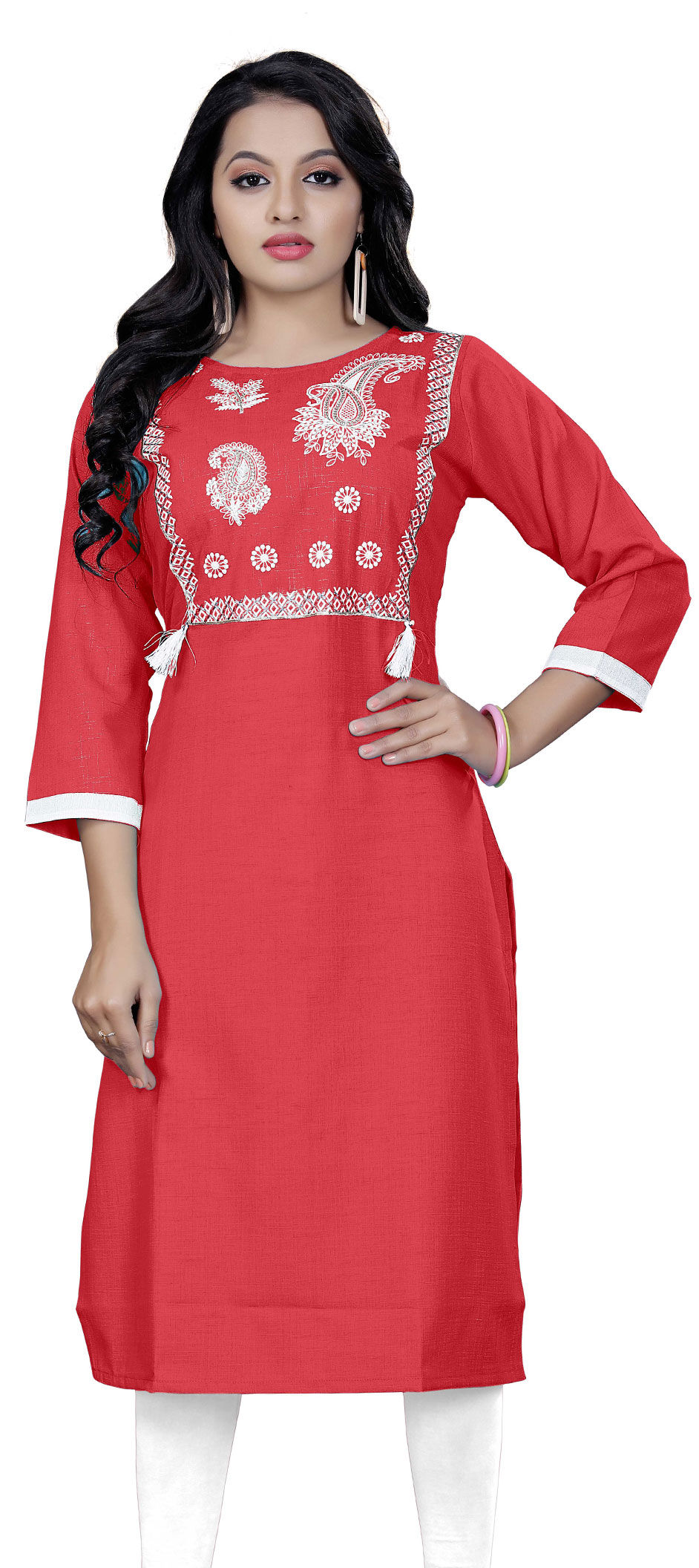 Red and Maroon color Kurti in Blended Cotton fabric with Embroidered work