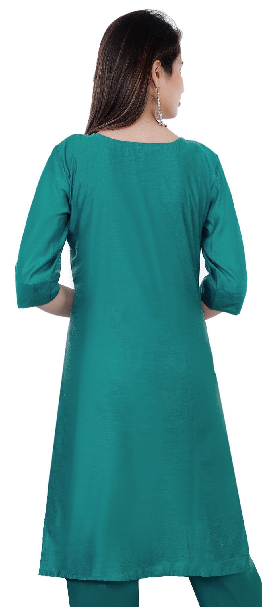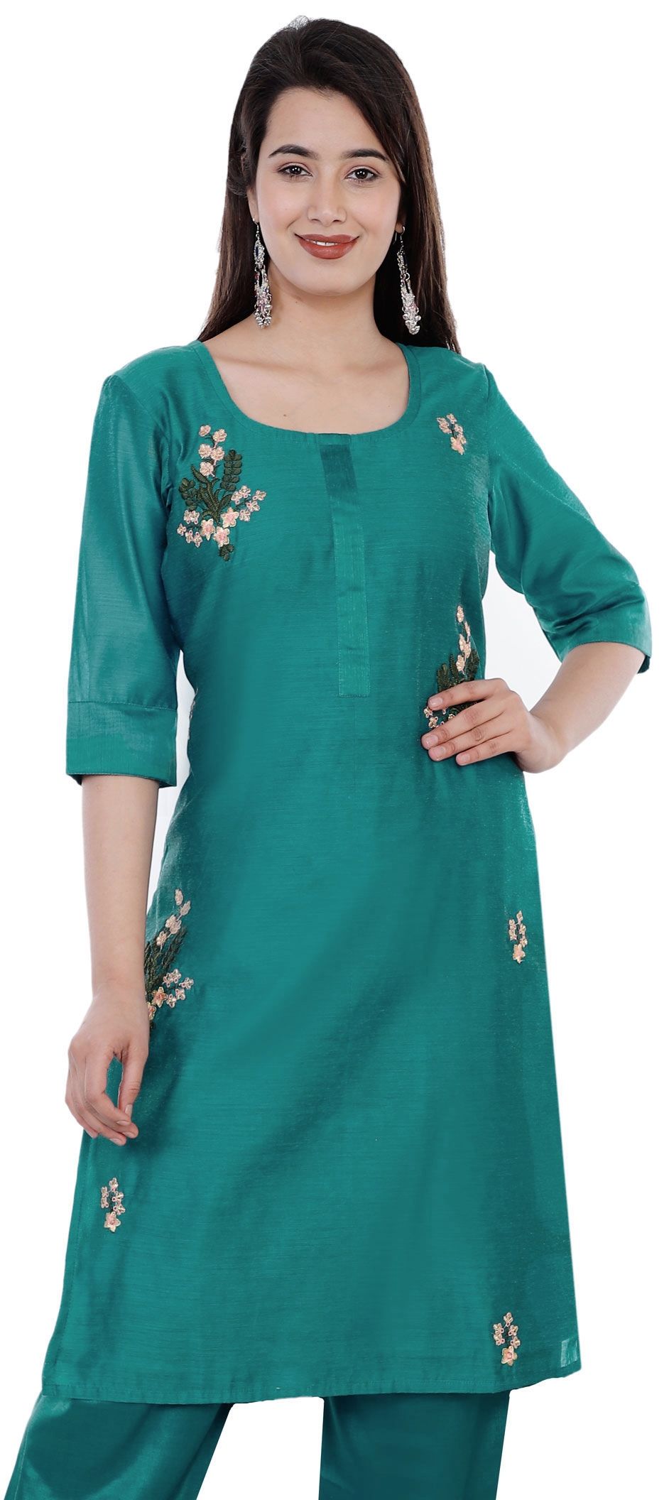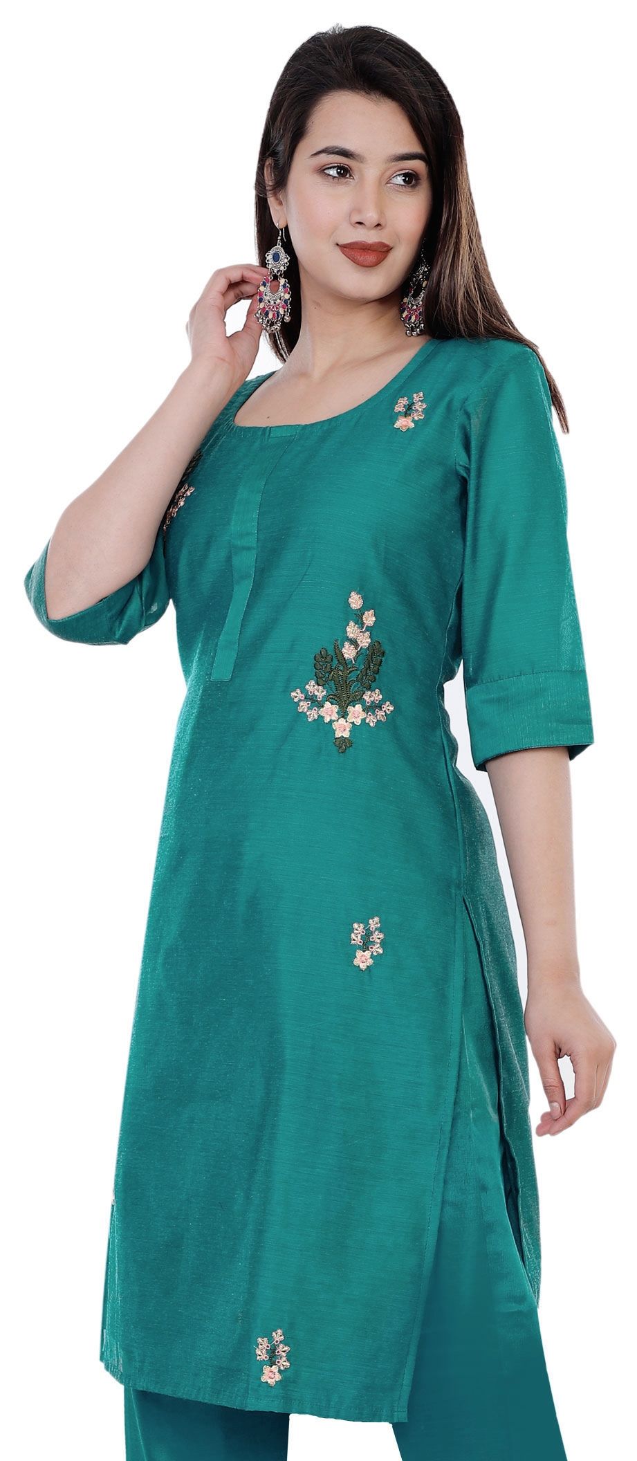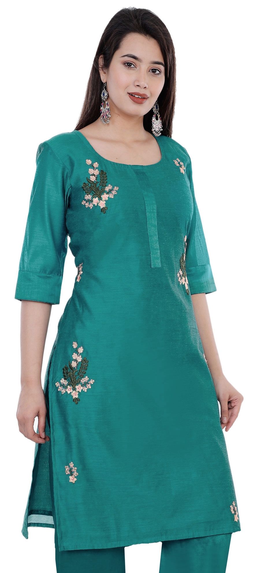 Blue color Kurti in Chanderi Silk fabric with Embroidered, Thread work