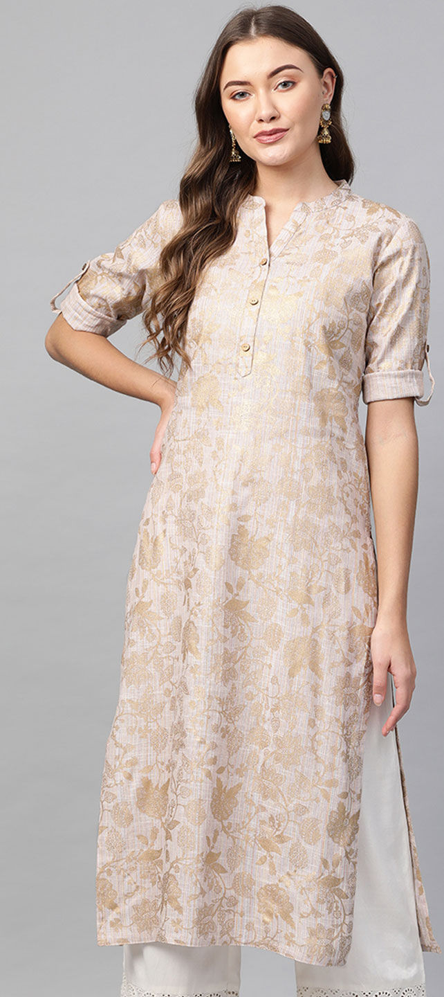 Beige and Brown color Kurti in Cotton fabric with Digital Print work