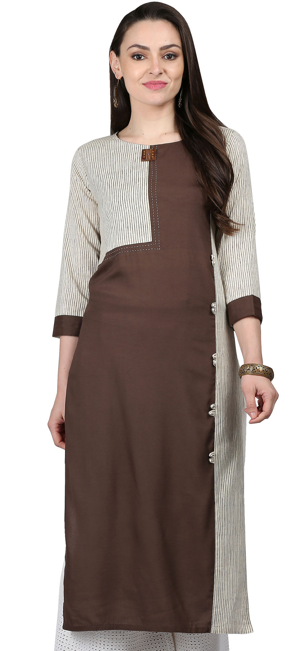 Beige and Brown color Kurti in Cotton fabric with Printed work