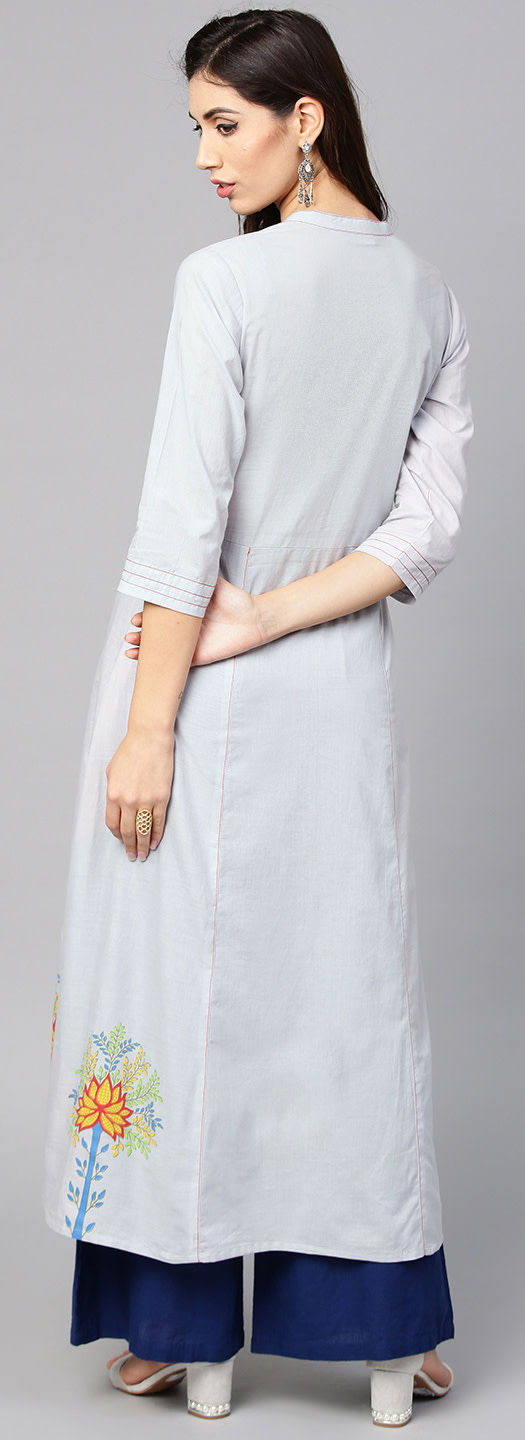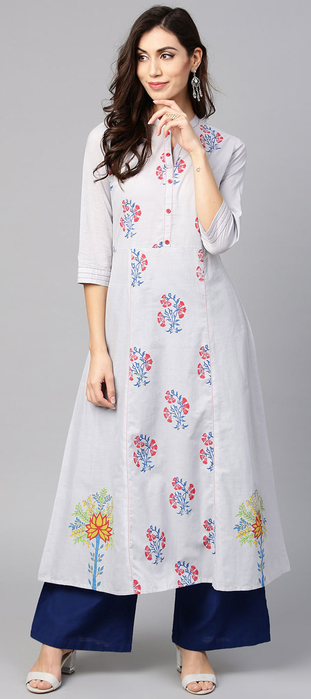Black and Grey color Kurti in Cotton fabric with Printed work
