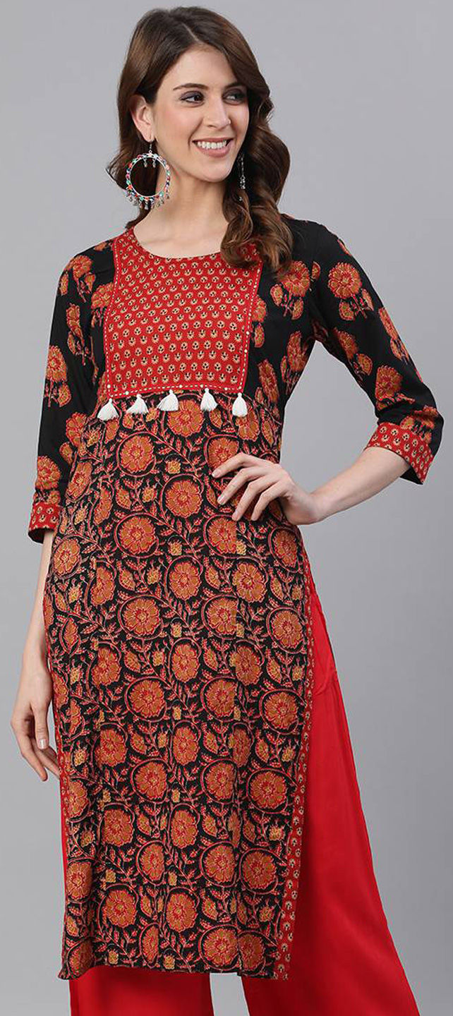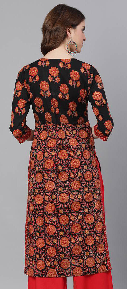 Black and Grey color Kurti in Cotton fabric with Printed, Thread work