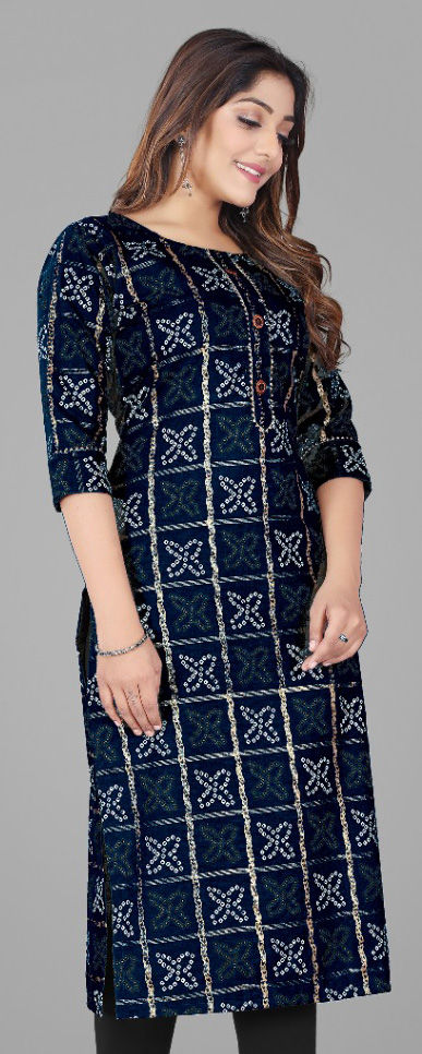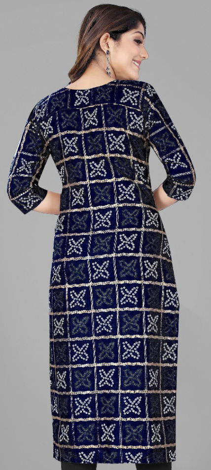 Blue color Kurti in Cotton fabric with Bandhej, Printed work