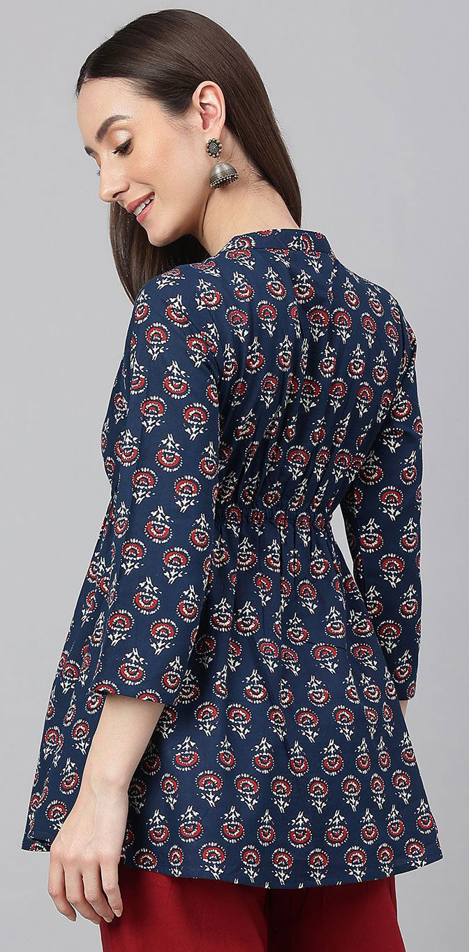 Blue color Kurti in Cotton fabric with Floral, Printed work