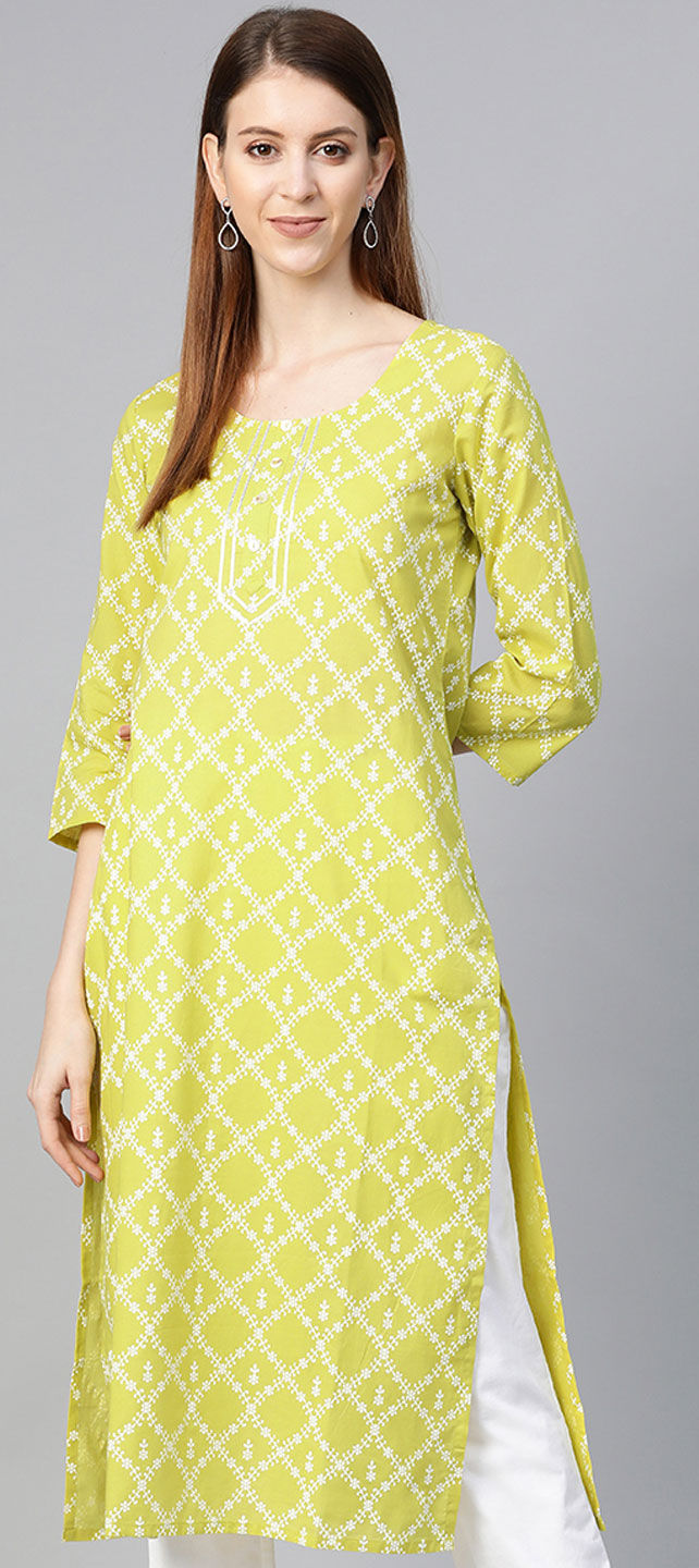 Green color Kurti in Cotton fabric with Floral, Printed work
