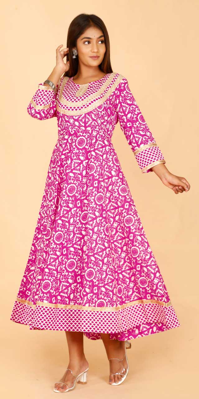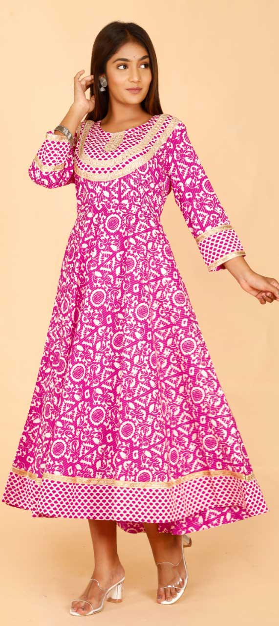 in Pink and Majenta with Printed work