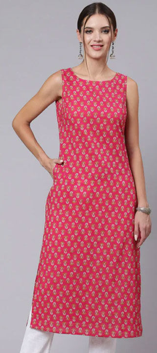 Pink and Majenta color Kurti in Cotton fabric with Printed work