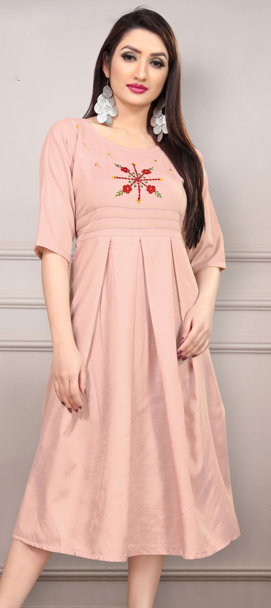 Pink and Majenta color Kurti in Cotton fabric with Embroidered, Resham, Thread work