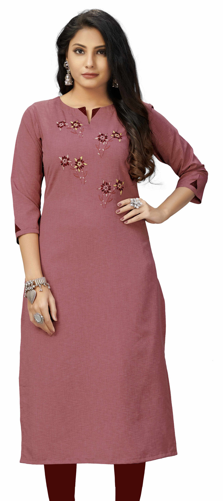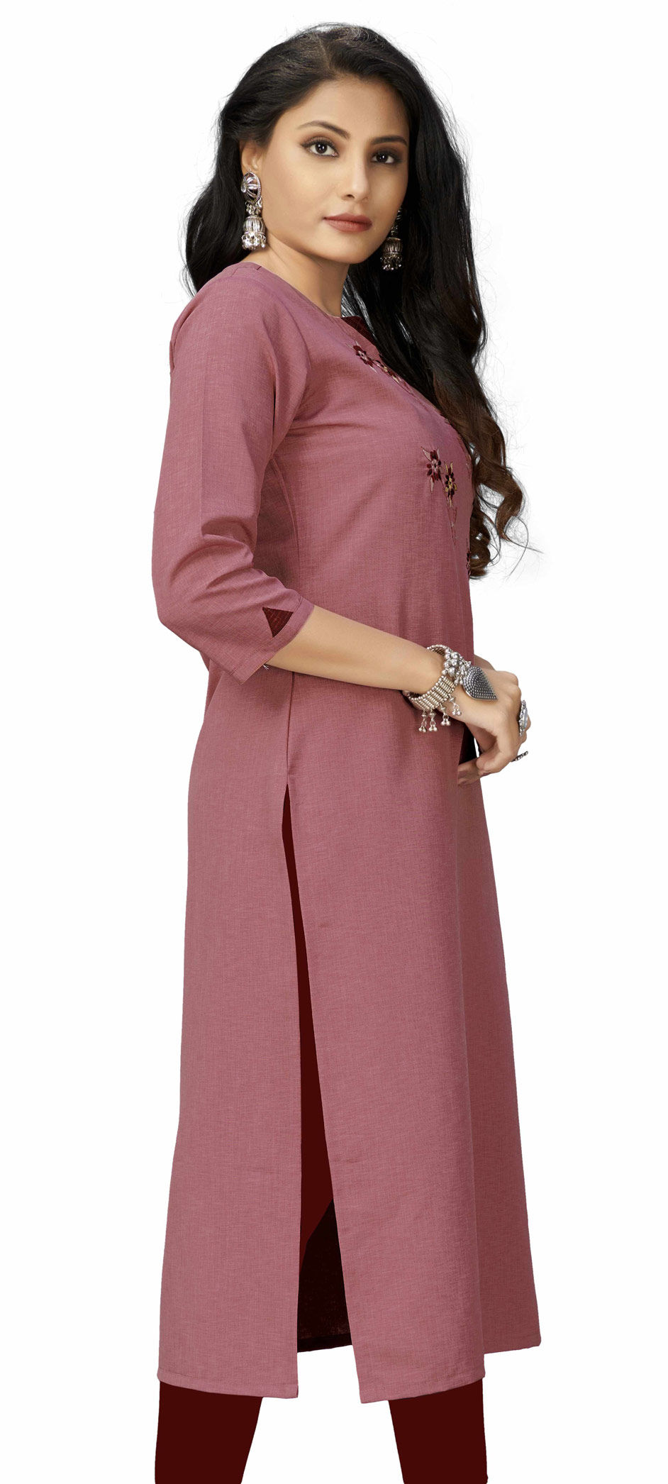 Pink and Majenta color Kurti in Cotton fabric with Thread work