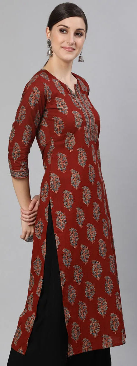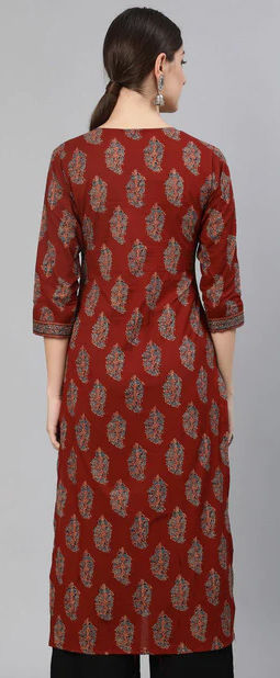 Red and Maroon color Kurti in Cotton fabric with Printed work