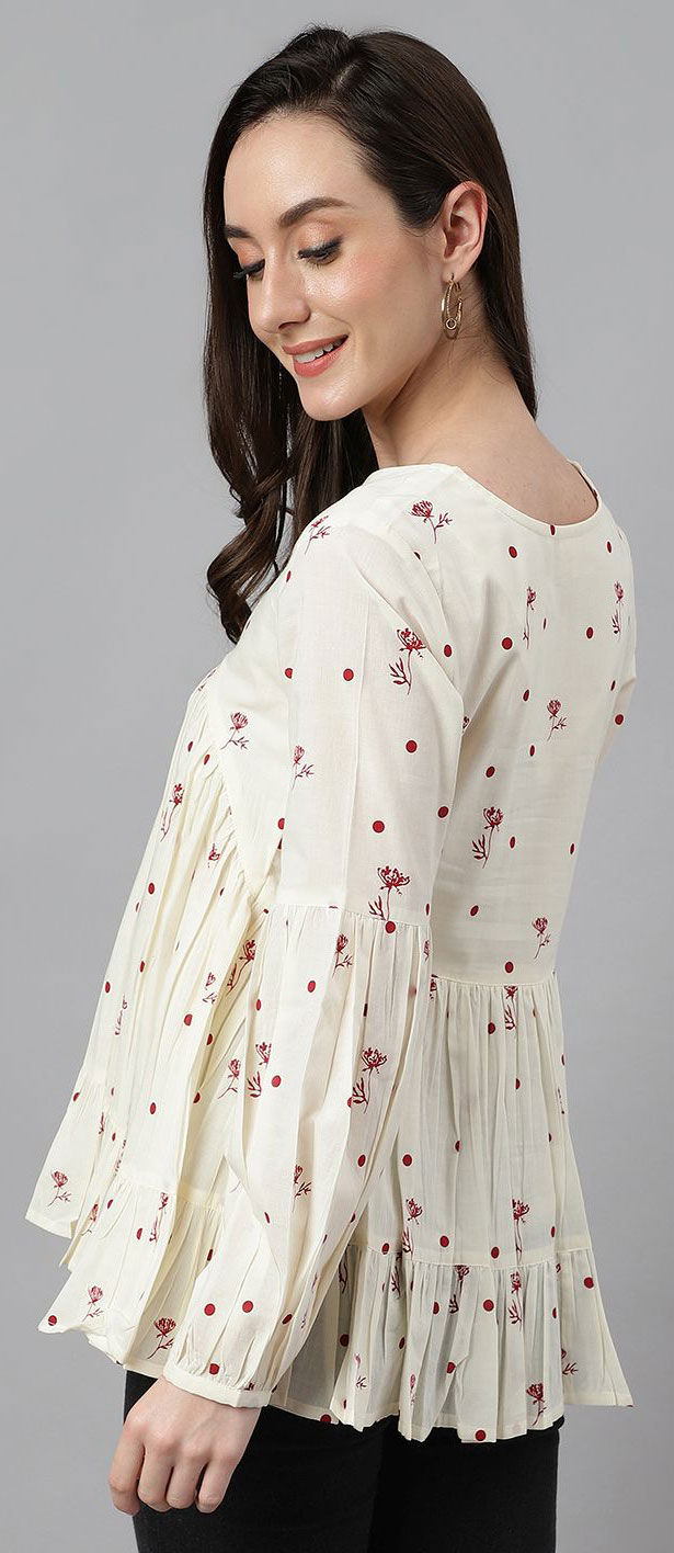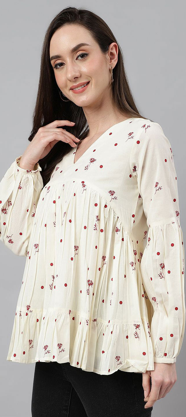 White and Off White color Kurti in Cotton fabric with Floral, Printed work