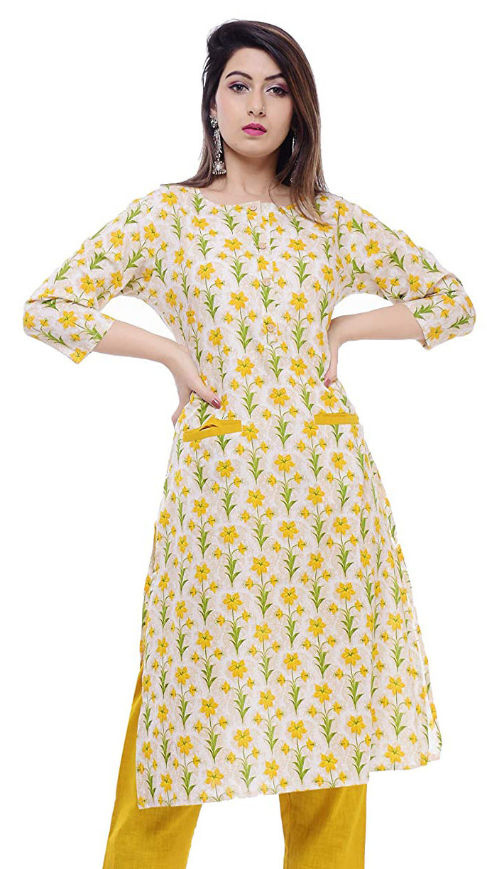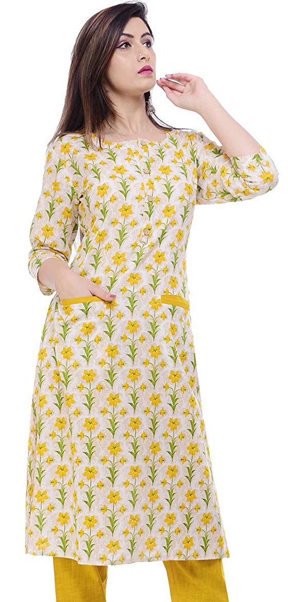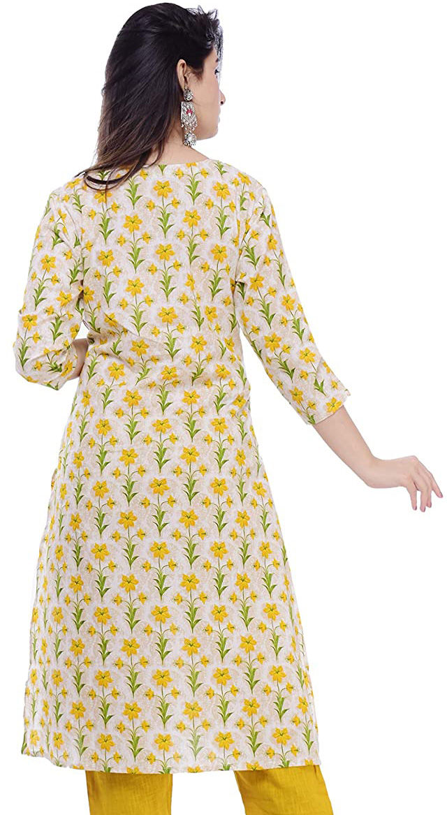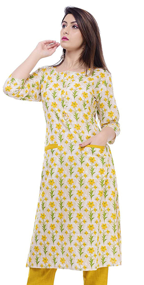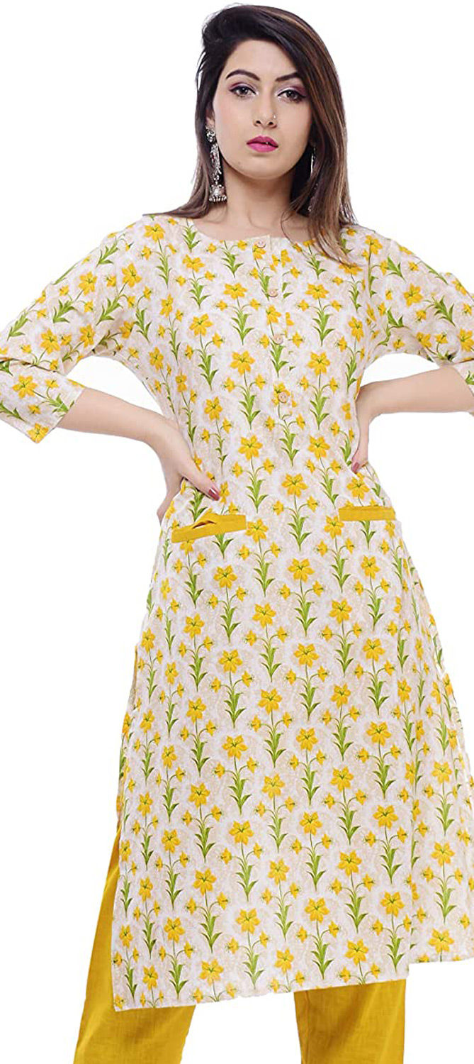 White and Off White color Kurti in Cotton fabric with Floral, Printed work