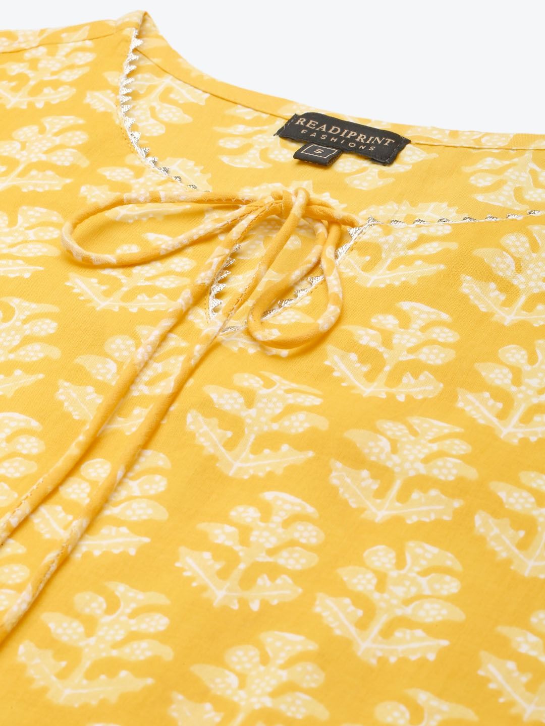 Yellow color Kurti in Cotton fabric with Gota Patti, Printed work