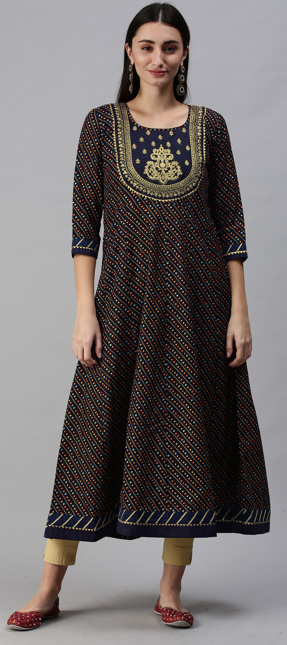 Black and Grey color Kurti in Cotton fabric with Bandhej, Printed, Sequence work