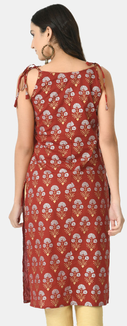 Red and Maroon color Kurti in Cotton fabric with Printed work