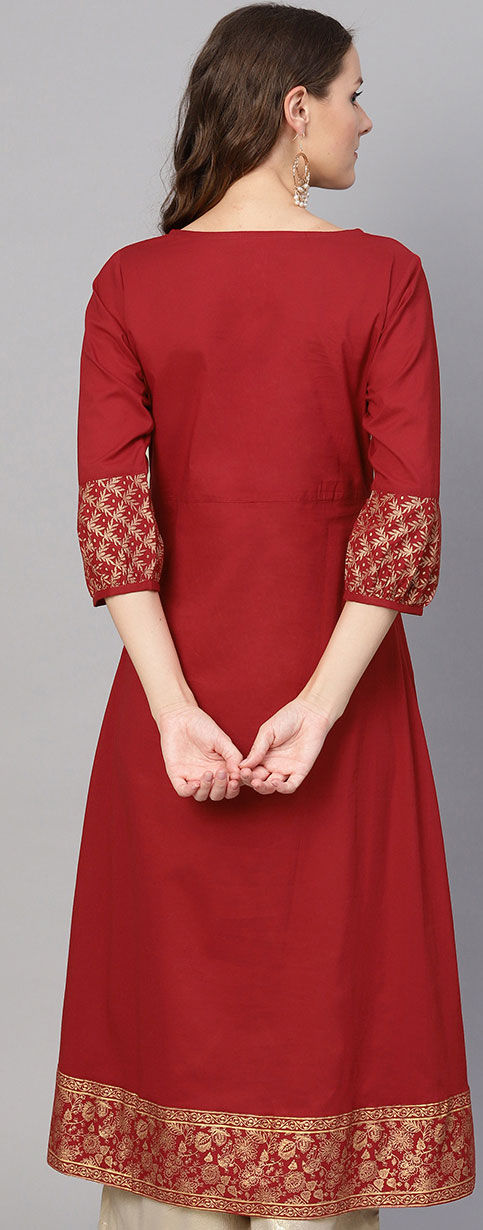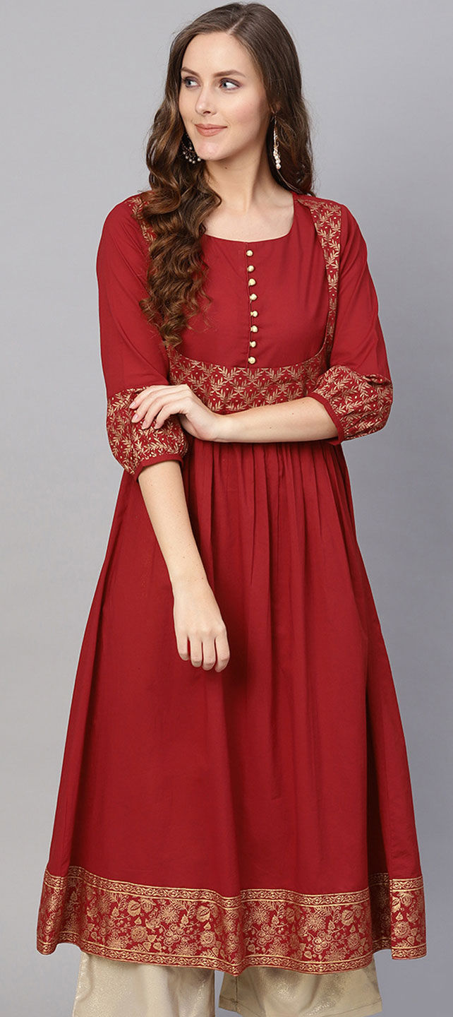 Red and Maroon color Kurti in Cotton fabric with Printed work