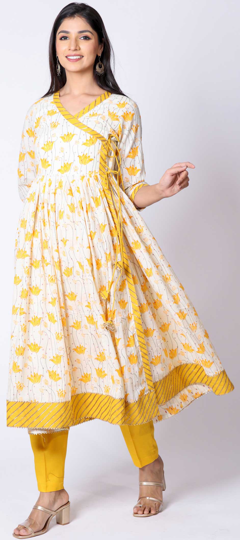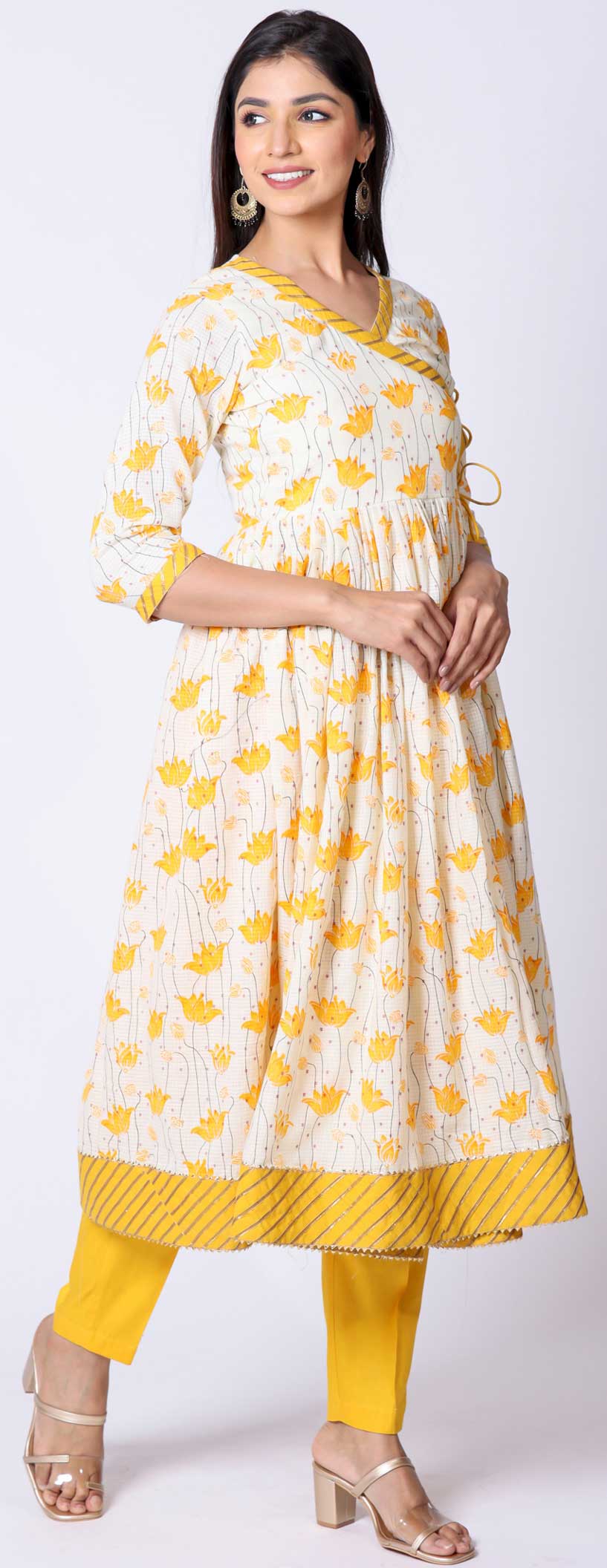Yellow color Kurti in Cotton fabric with Gota Patti work