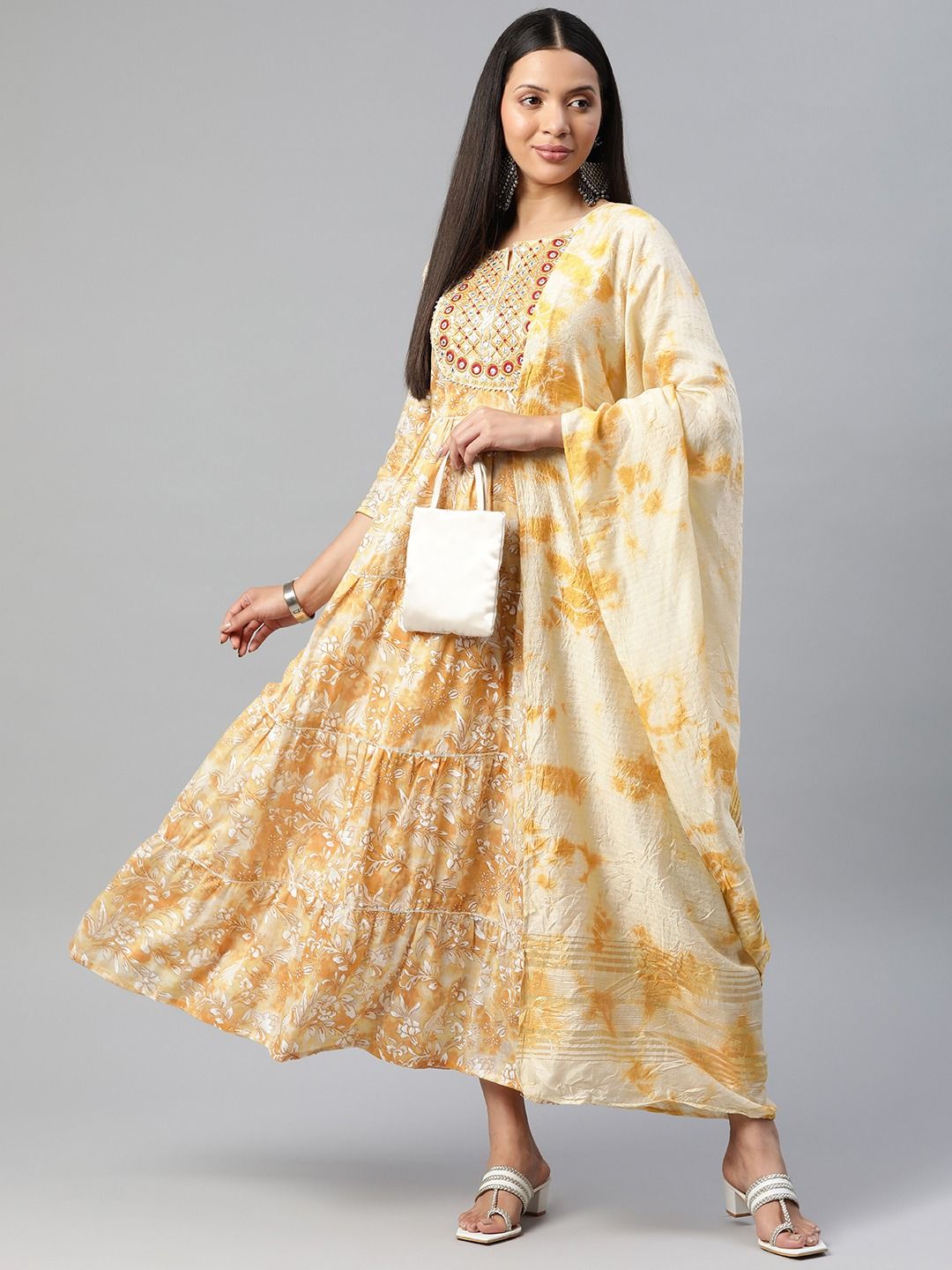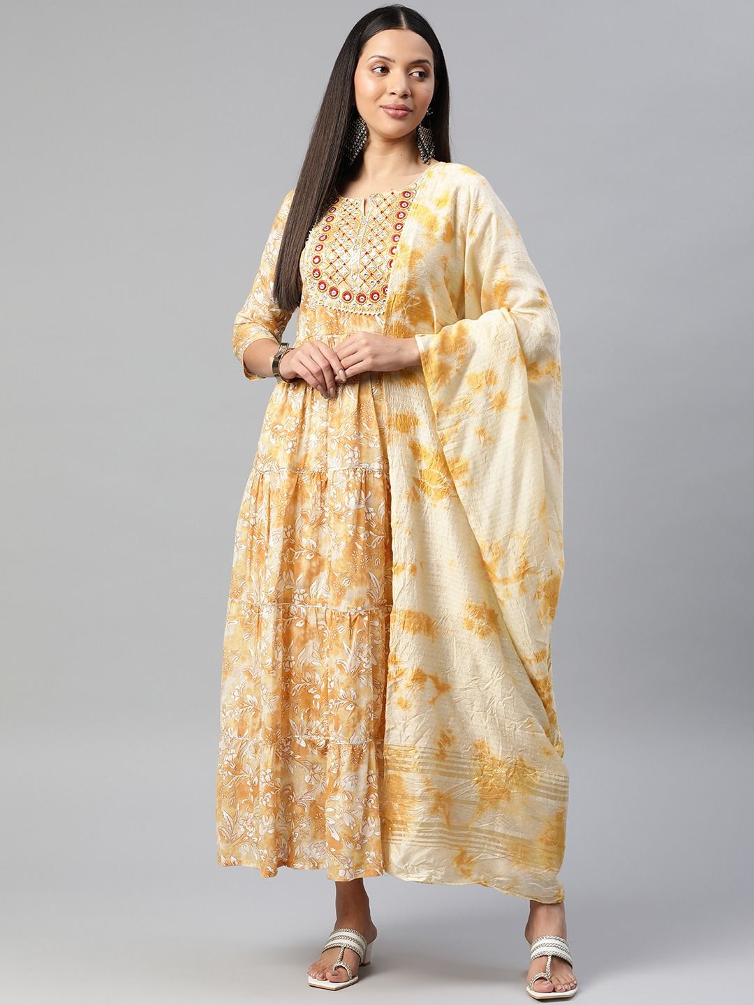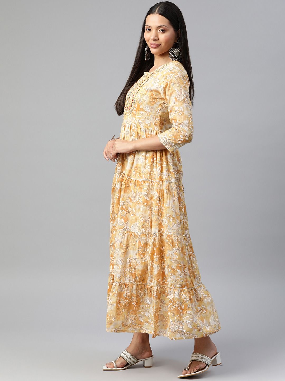 Yellow color Kurti in Cotton fabric with Embroidered, Printed, Resham, Thread, Zari work