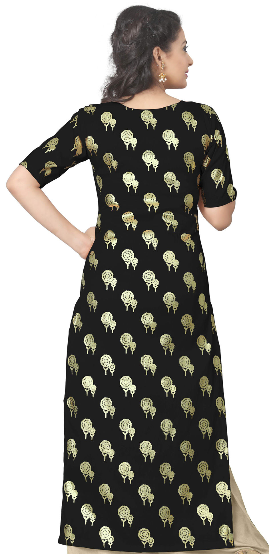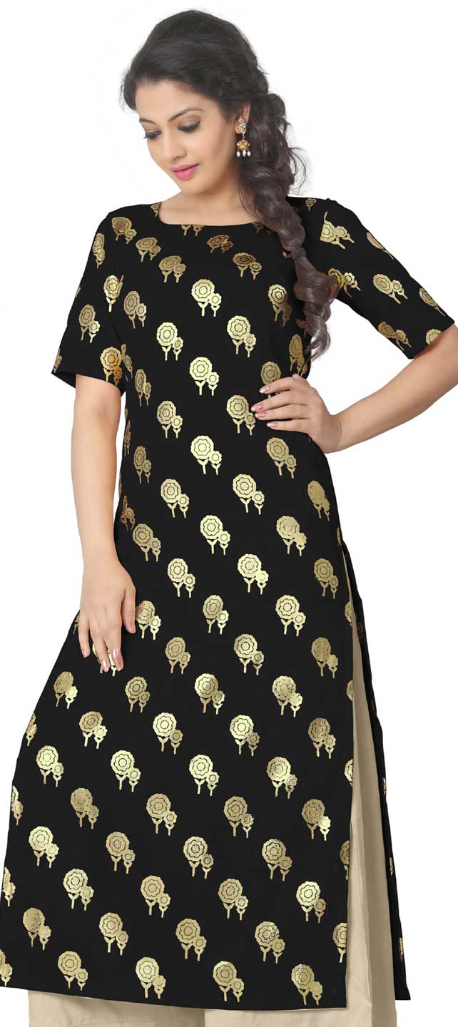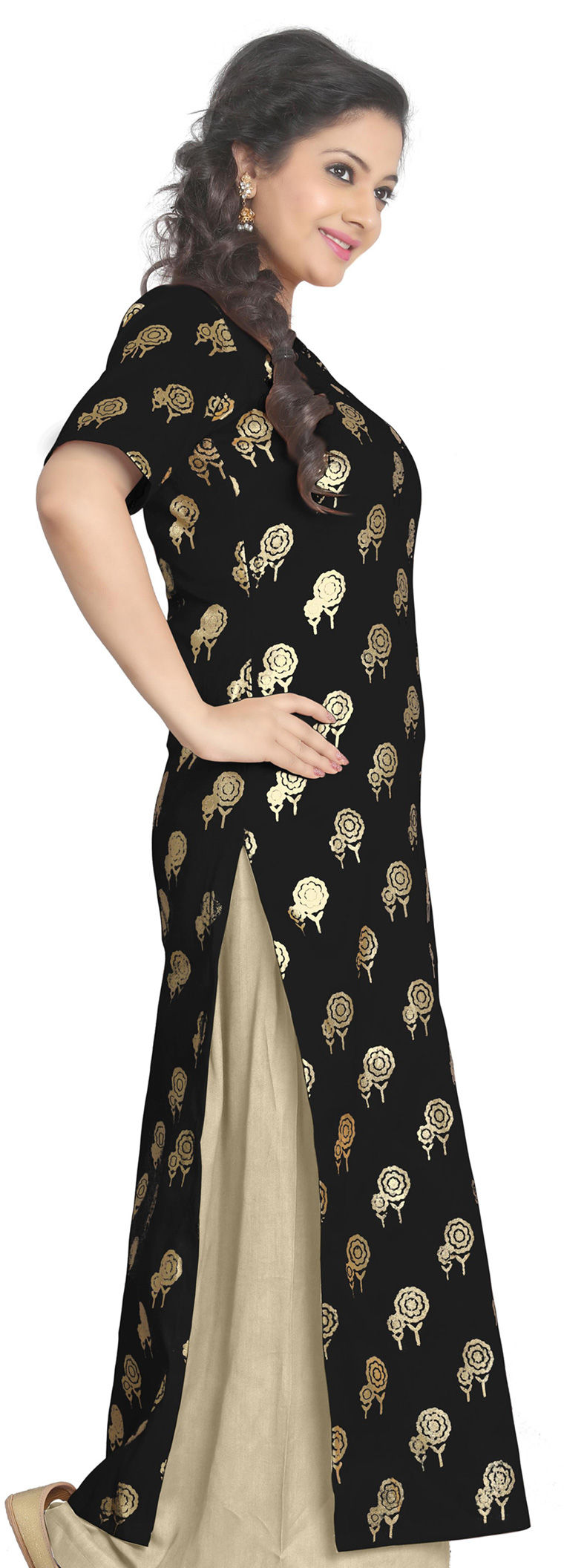 Black and Grey color Kurti in Crepe Silk fabric with Foil Print work