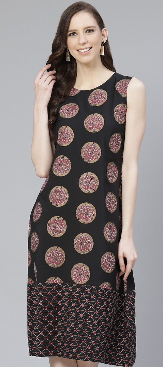 Black and Grey color Kurti in Crepe Silk fabric with Printed work