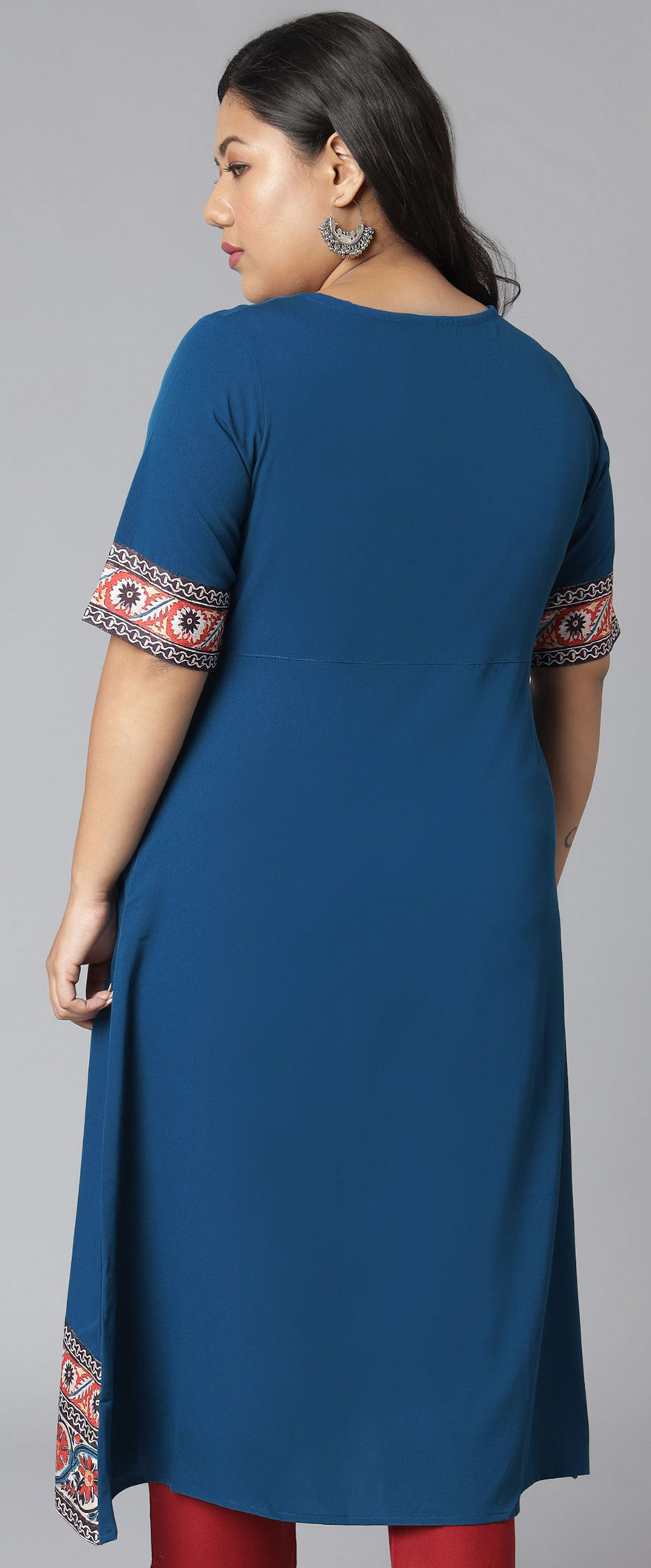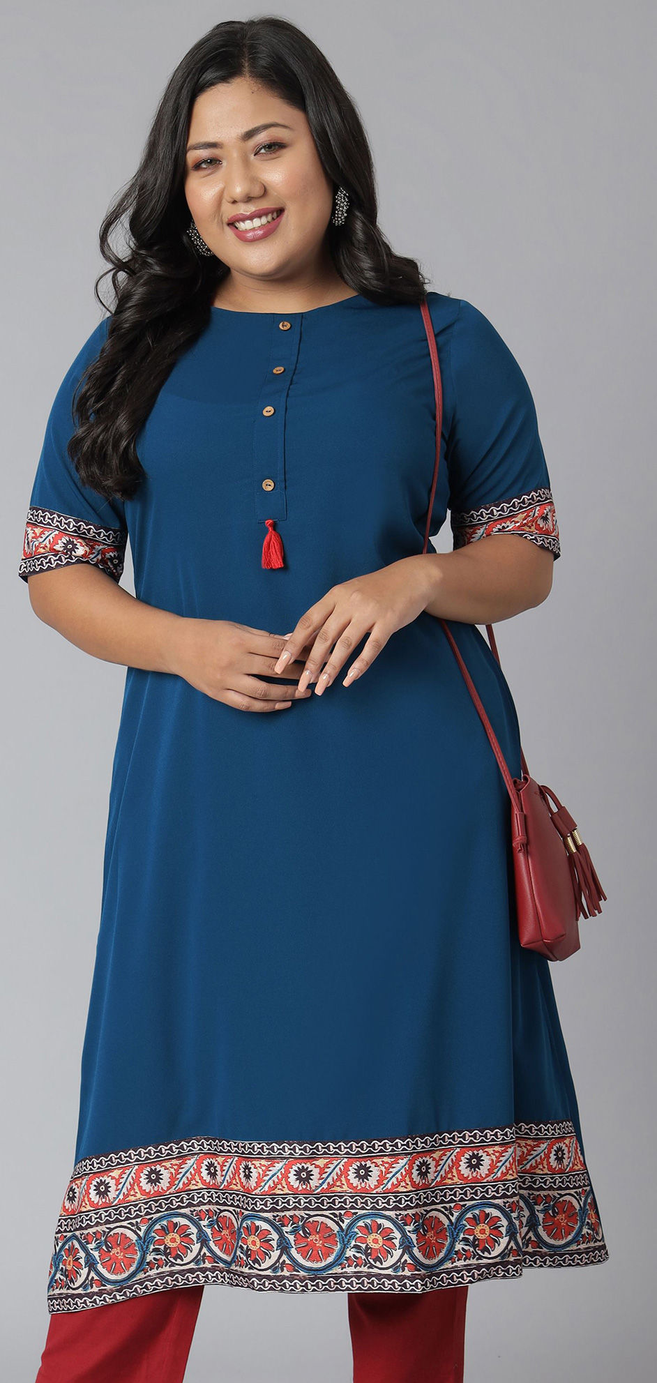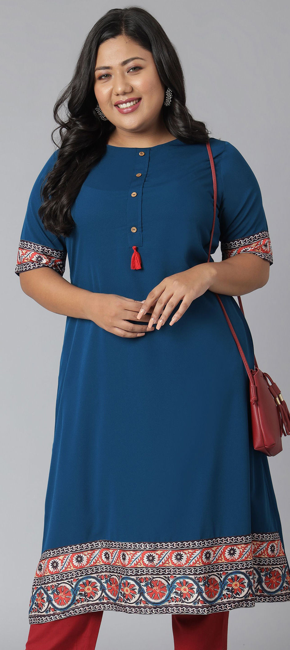 Blue color Kurti in Crepe Silk fabric with Floral, Printed work