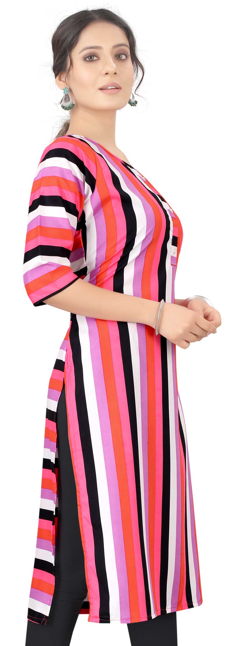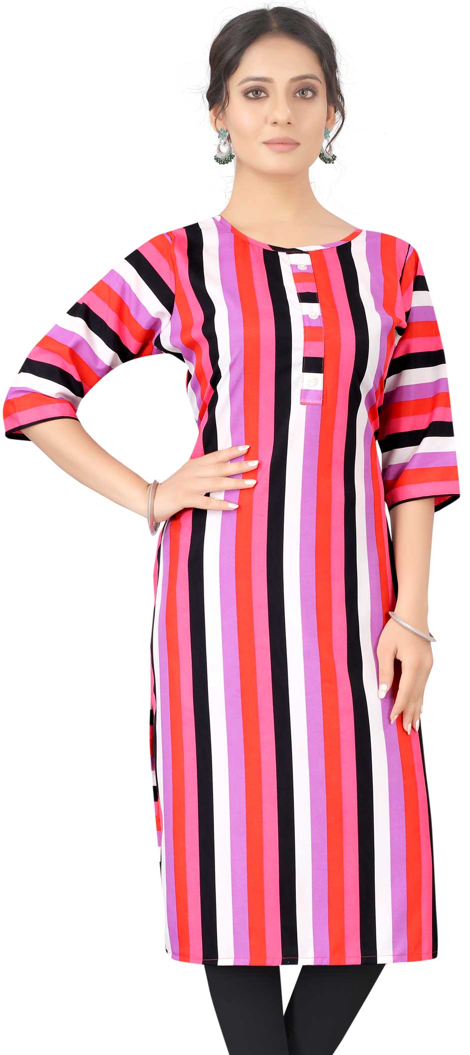 Pink and Majenta color Kurti in Crepe Silk fabric with Printed work