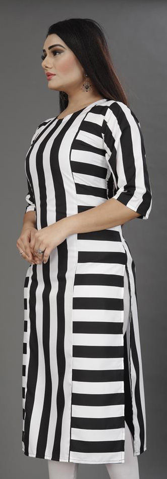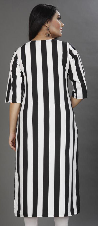 Black and Grey, White and Off White color Kurti in Crepe Silk fabric with Printed work