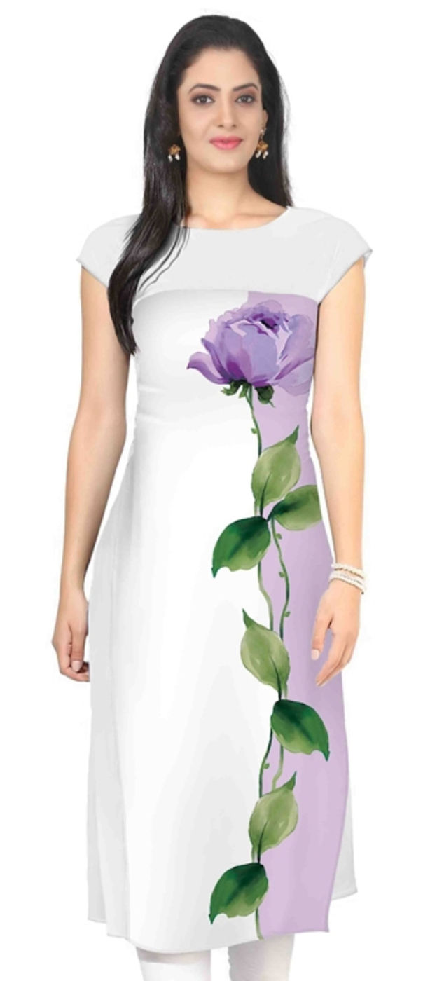 Purple and Violet, White and Off White color Kurti in Crepe Silk fabric with Printed work