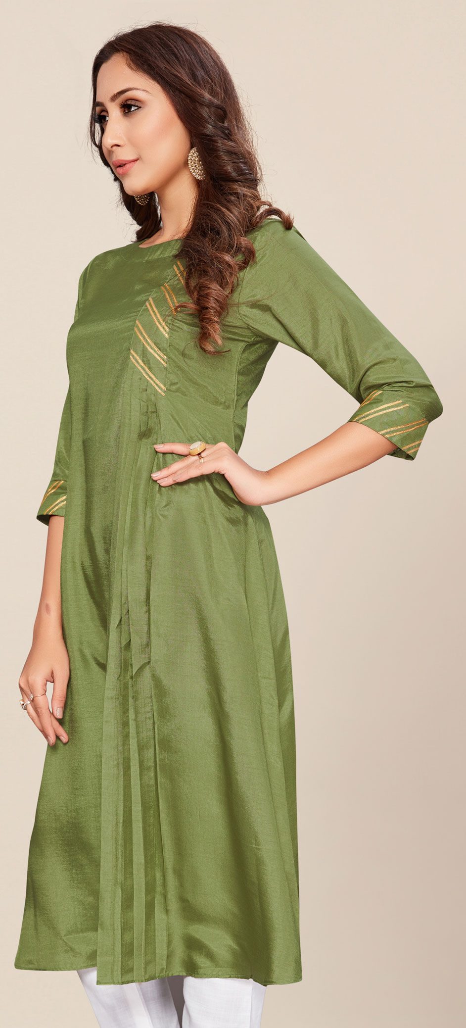 in Green with Pleats work