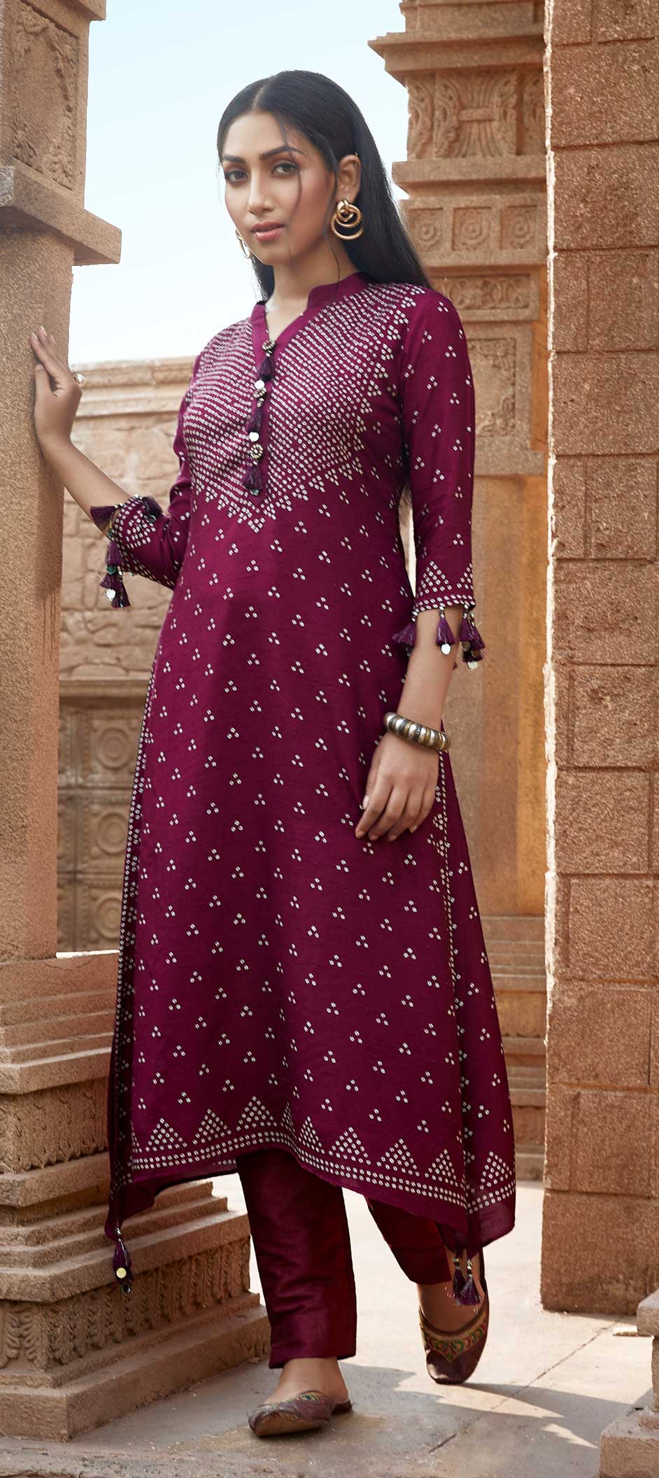 Purple and Violet color Kurti in Dolla Silk fabric with Digital Print work