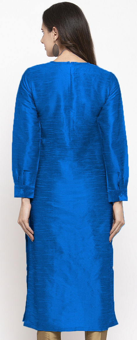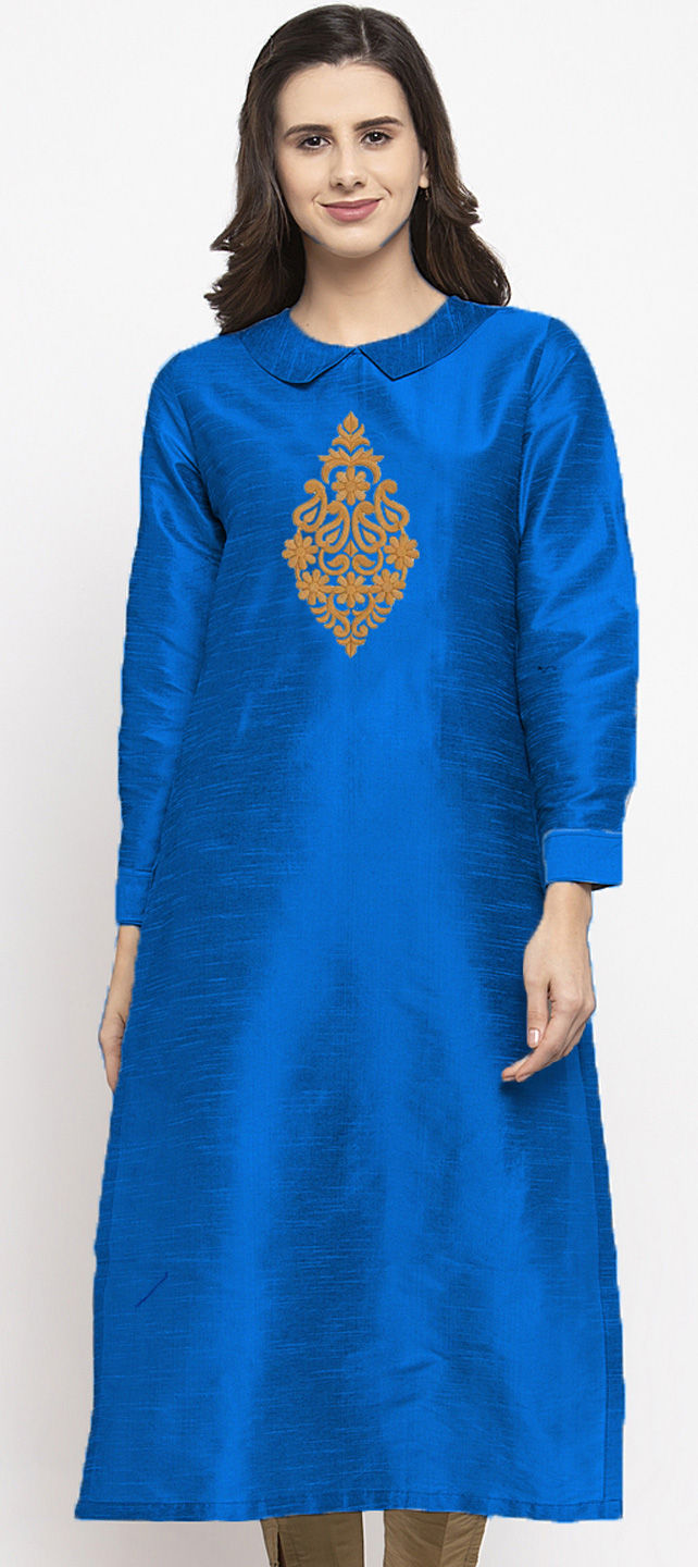 Blue color Kurti in Dupion Silk fabric with Embroidered, Thread work