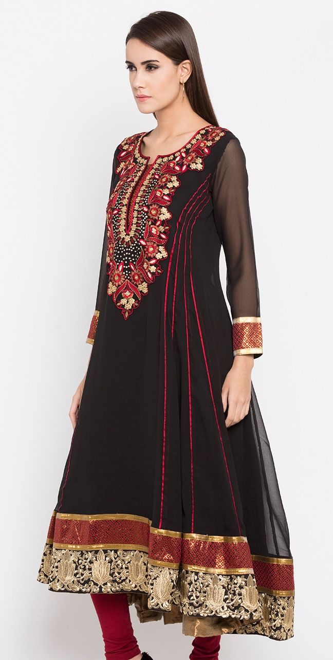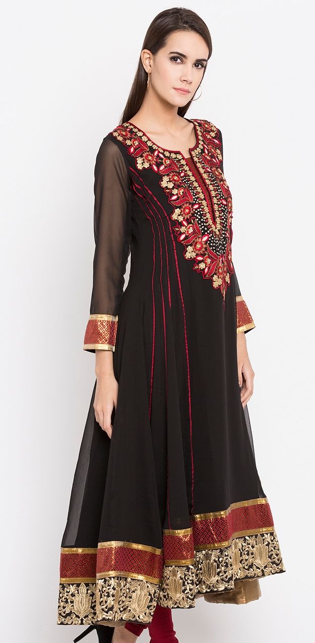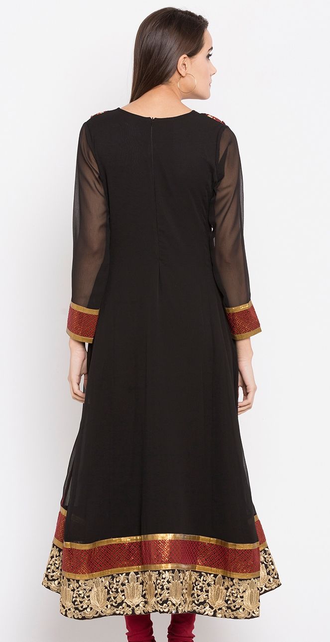 Black and Grey color Kurti in Faux Georgette fabric with Embroidered, Thread work
