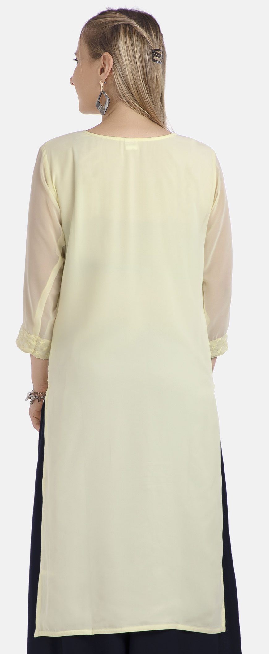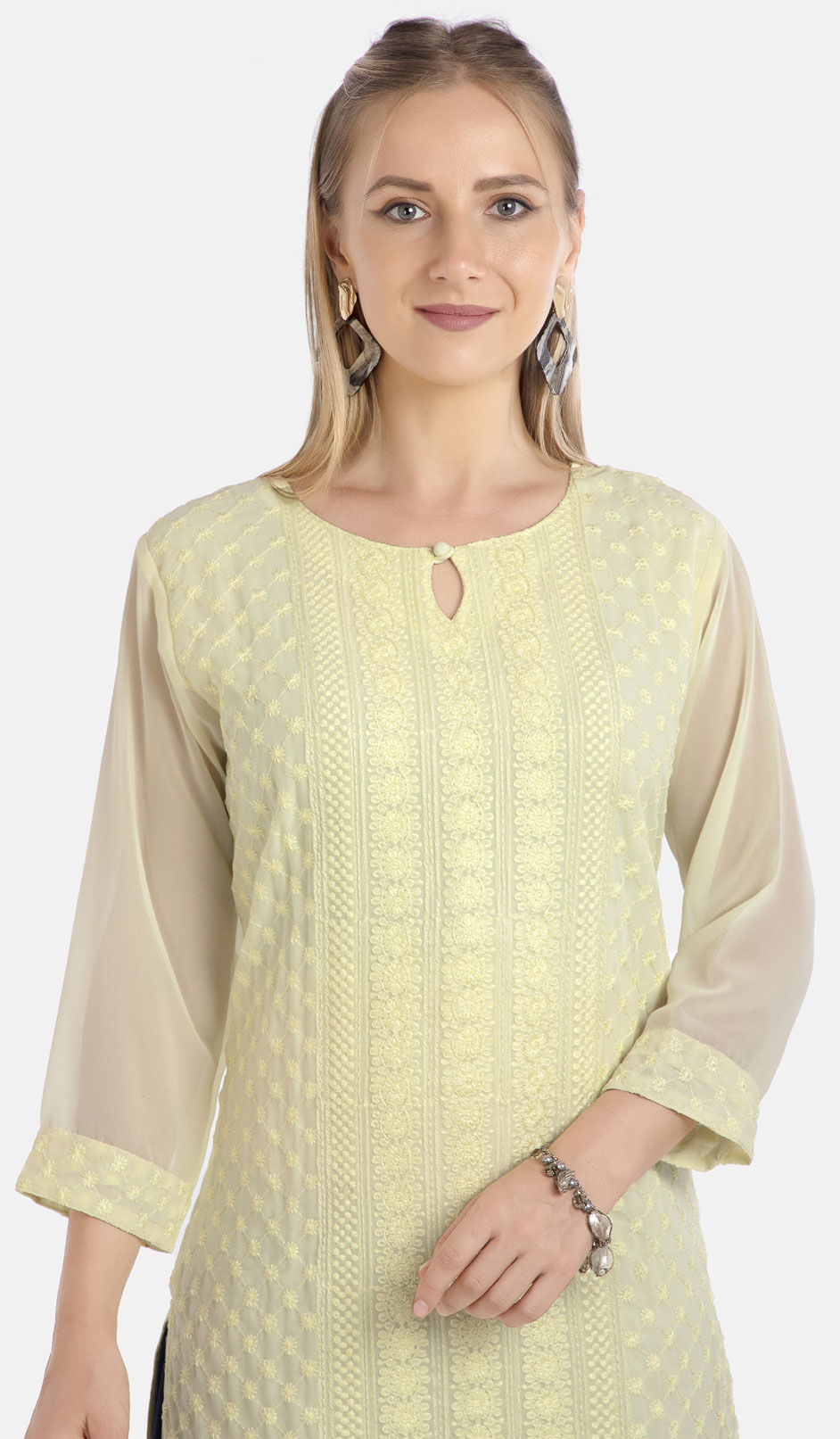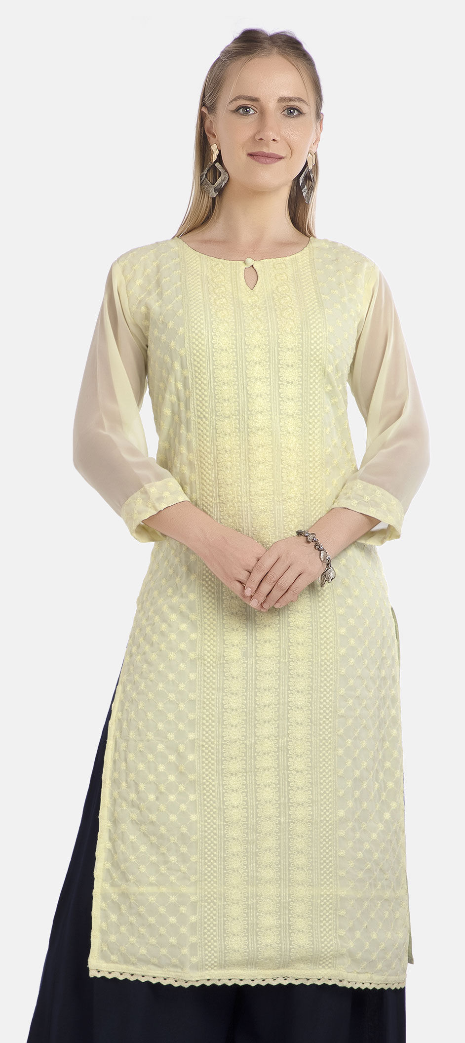Beige and Brown color Kurti in Georgette fabric with Embroidered, Resham, Thread work