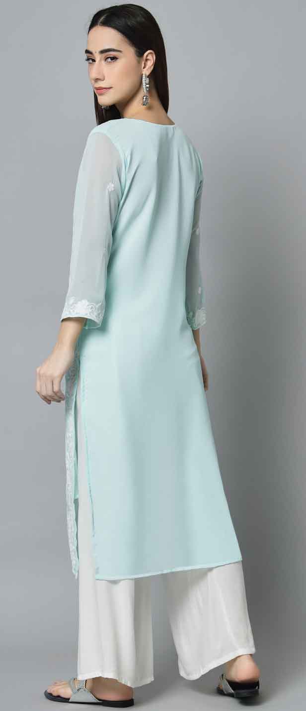 Blue color Kurti in Georgette fabric with Embroidered, Resham, Thread work