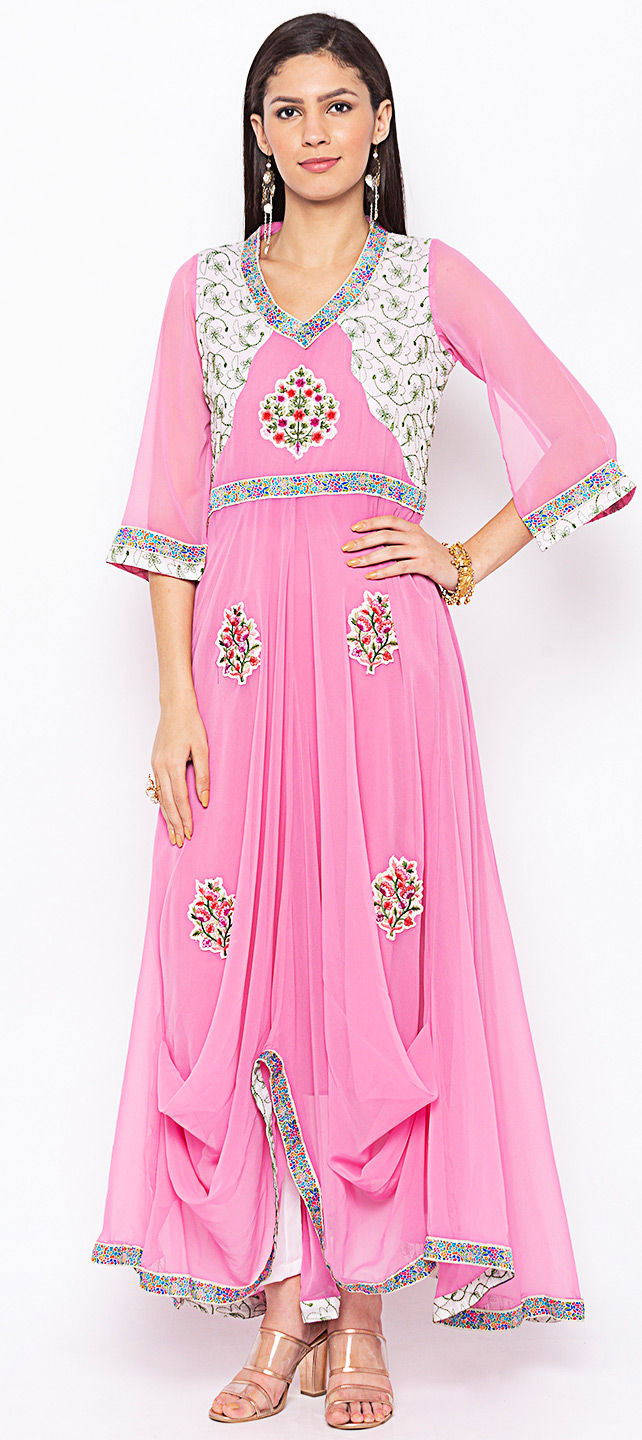 Pink and Majenta color Kurti in Georgette fabric with Embroidered, Thread work