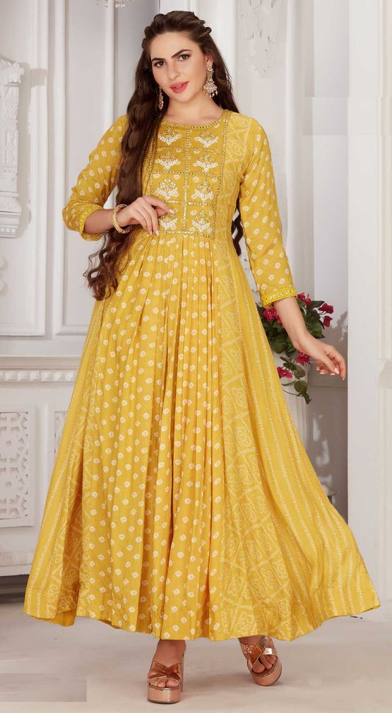 in Yellow with Mirror work
