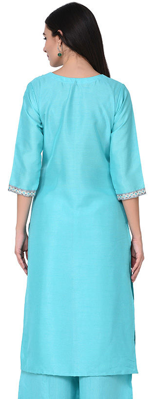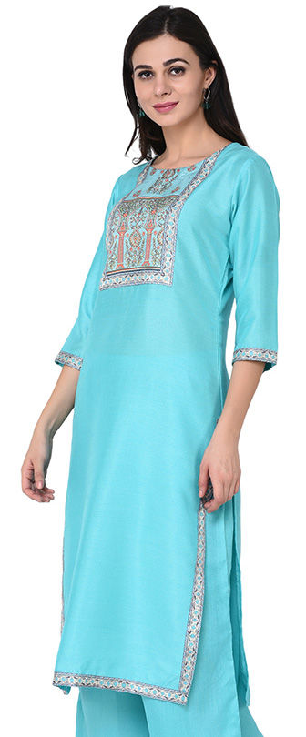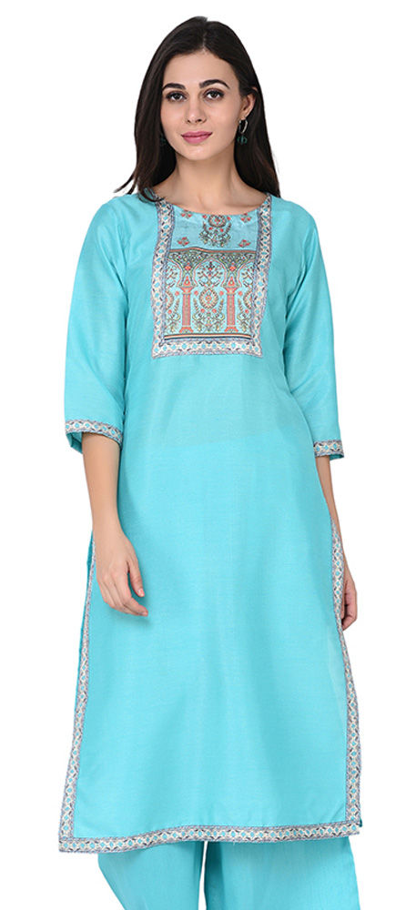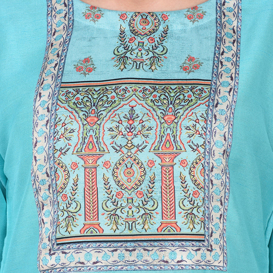 Blue color Kurti in Poly Silk fabric with Digital Print work
