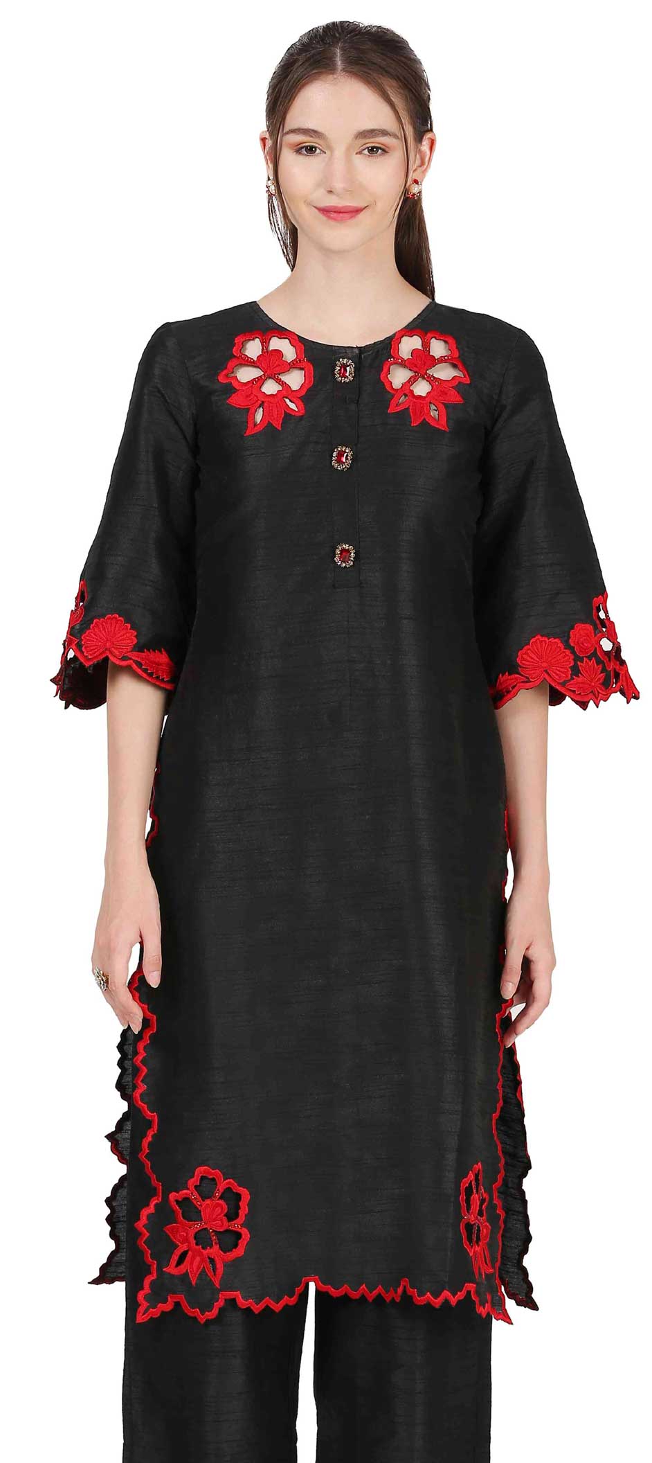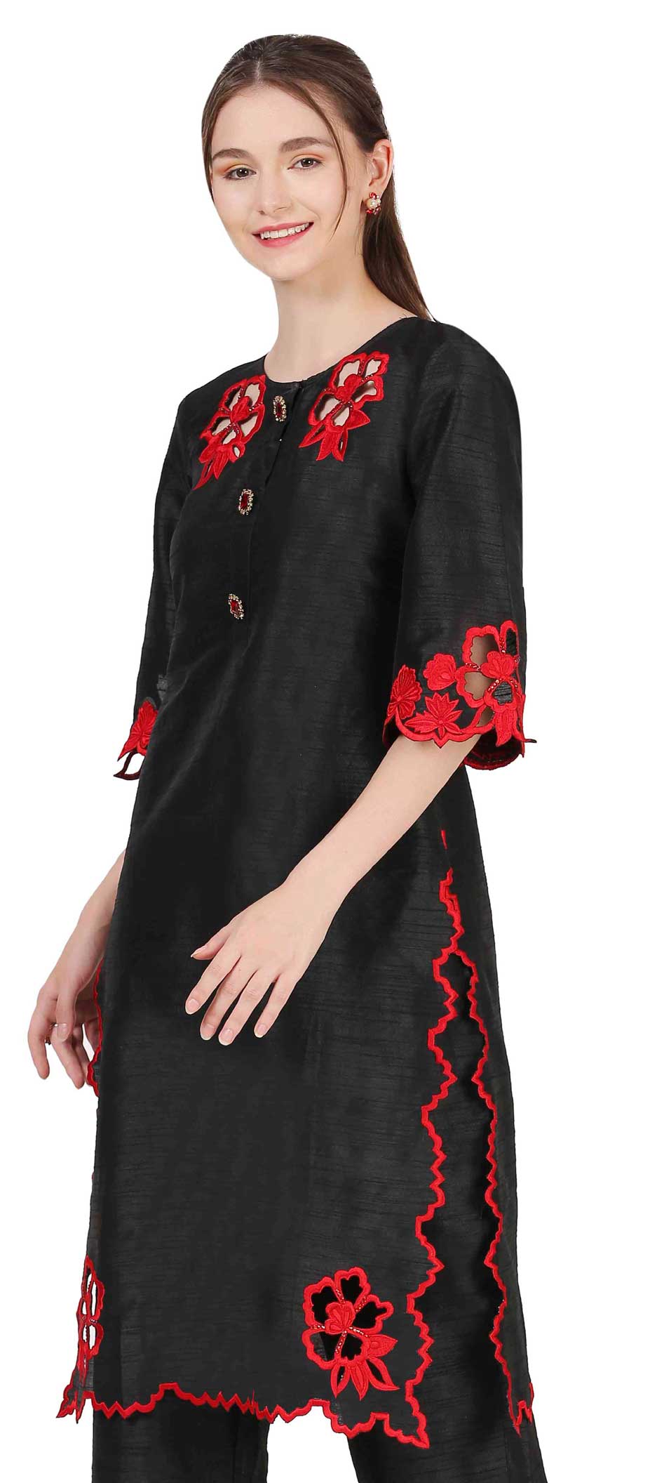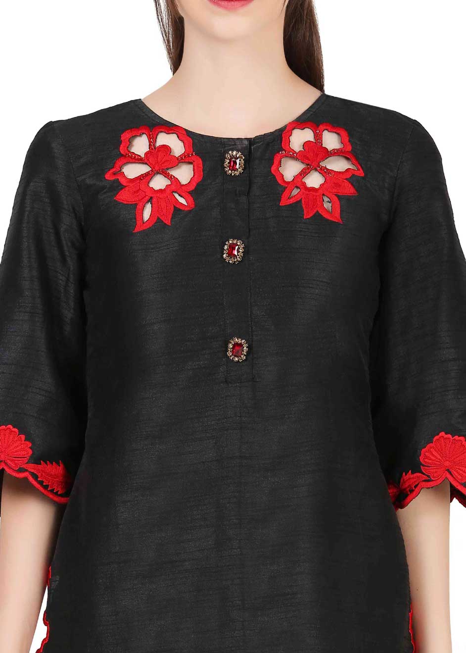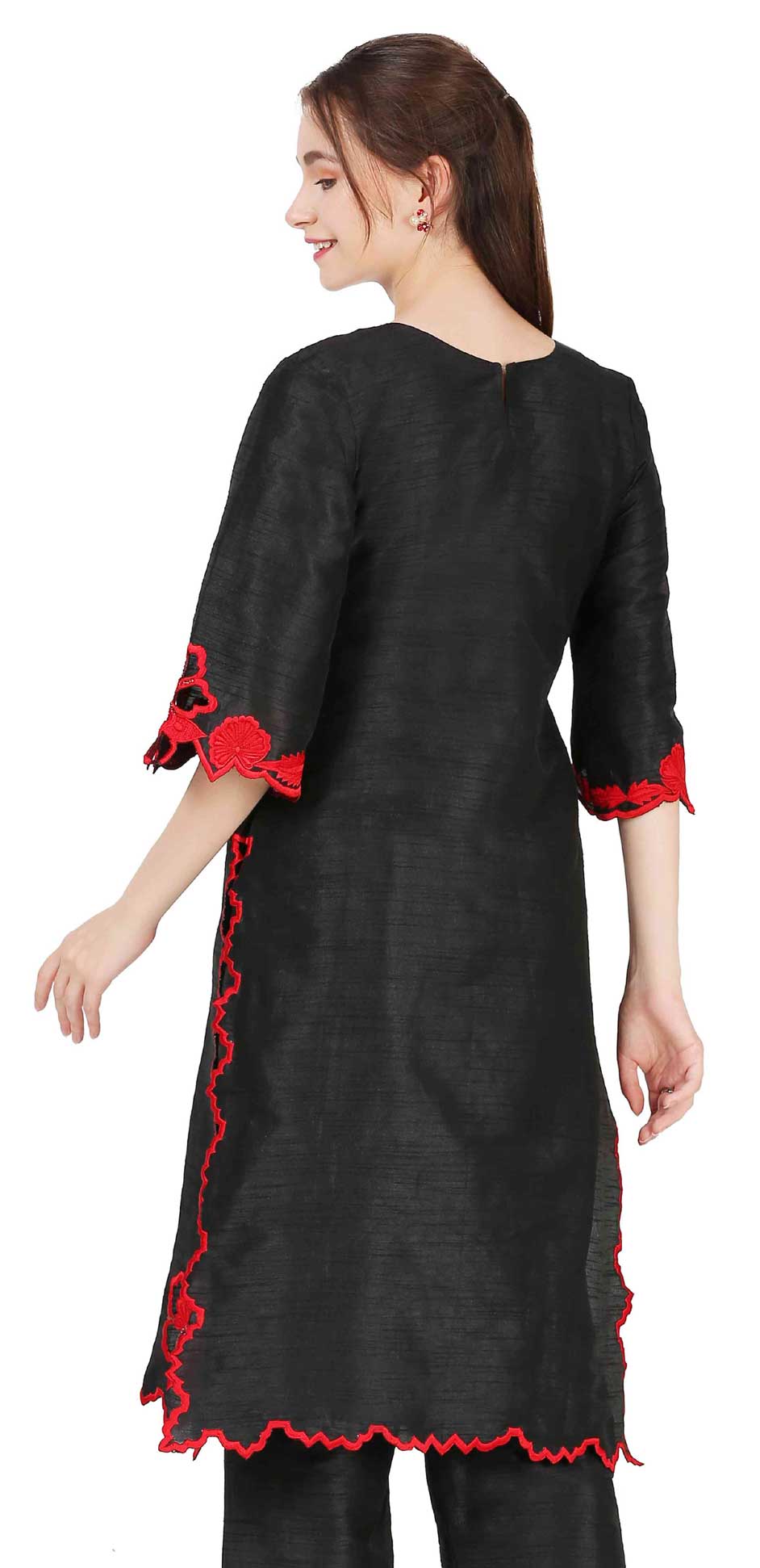 Black and Grey color Kurti in Raw Silk fabric with Resham, Thread work
